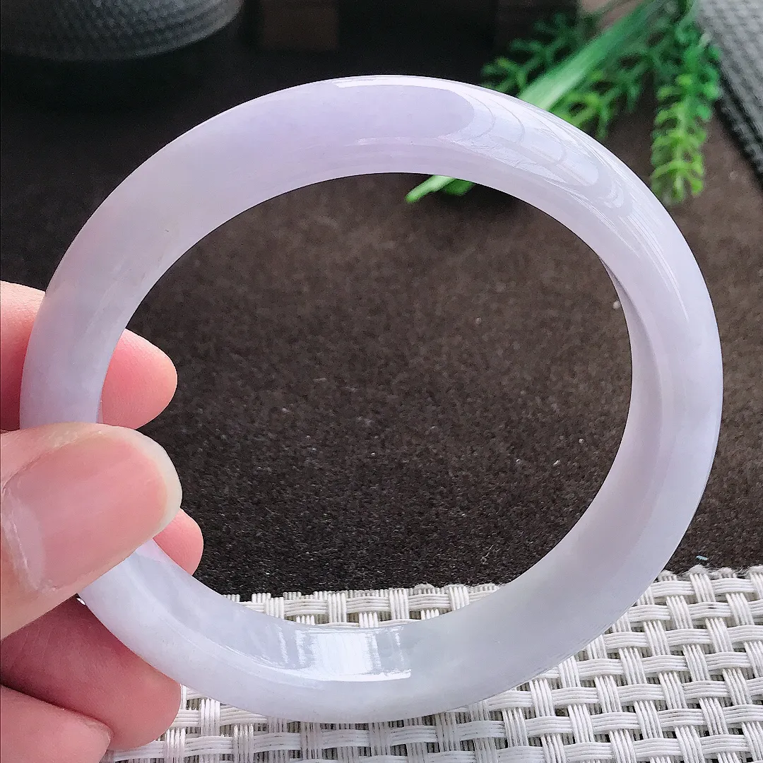 天然a货翡翠61.5/12.8/8.3老坑冰润大圈口紫罗兰手镯宽边翡翠玉手镯
