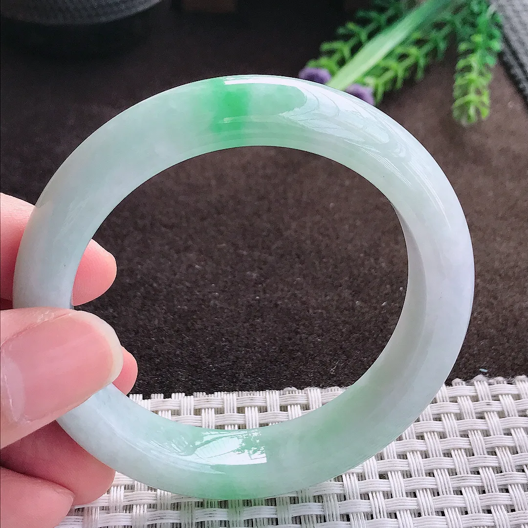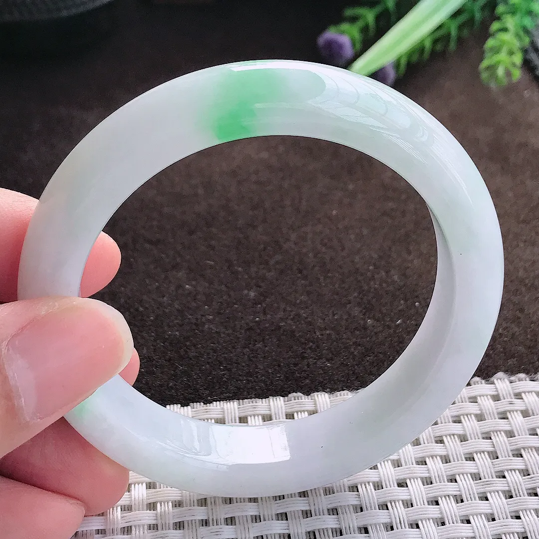 天然a货翡翠55.5/12.3/9老坑精美温润飘绿手镯宽边翡翠玉手镯