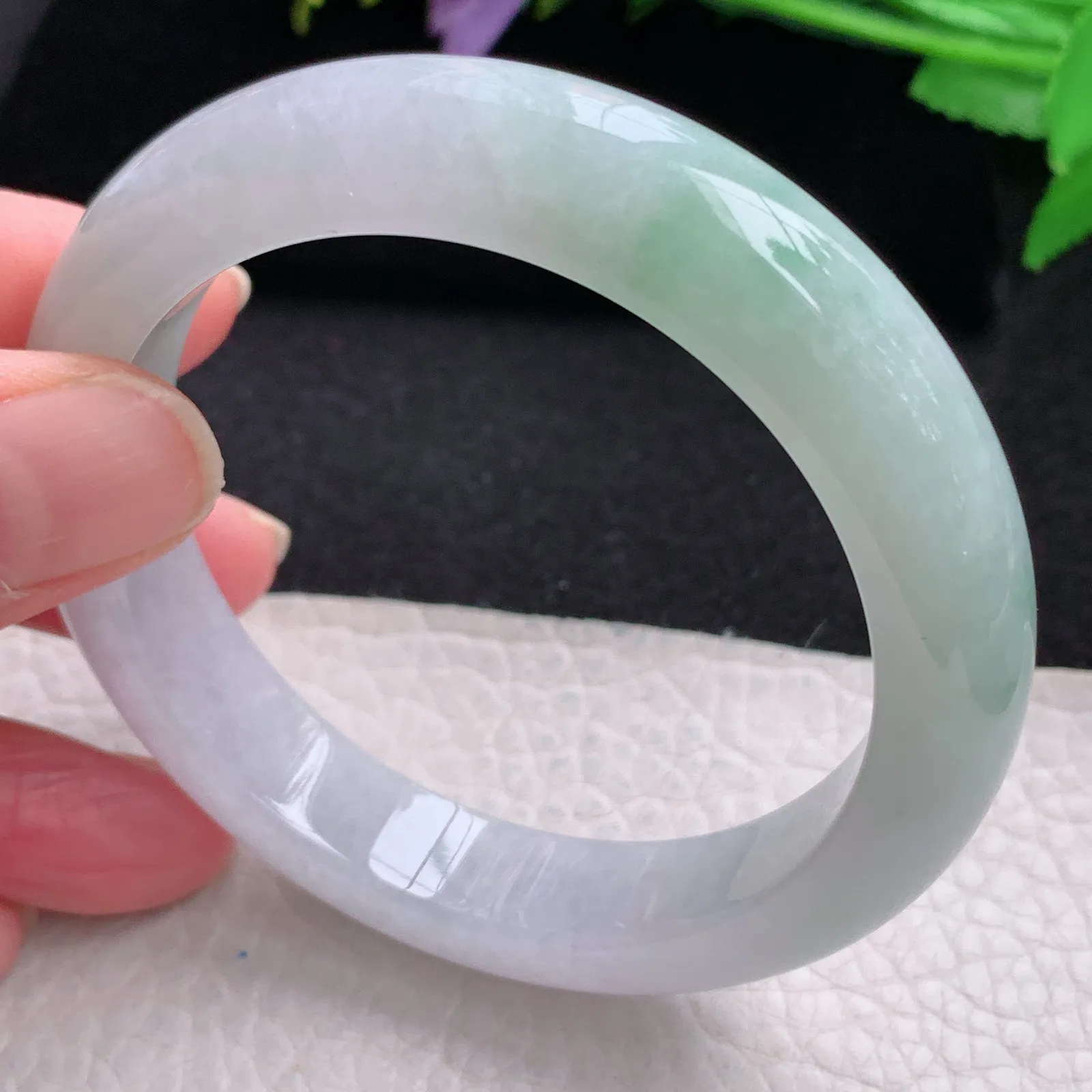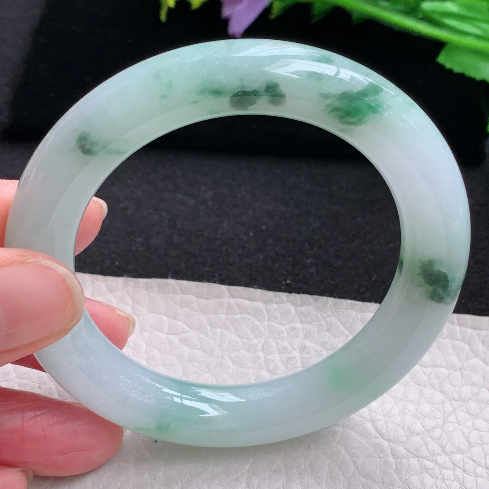 r自然光54*11.5*10.6美人镯 缅甸翡翠玉手镯飘花水灵圆条玉手环 叮当镯