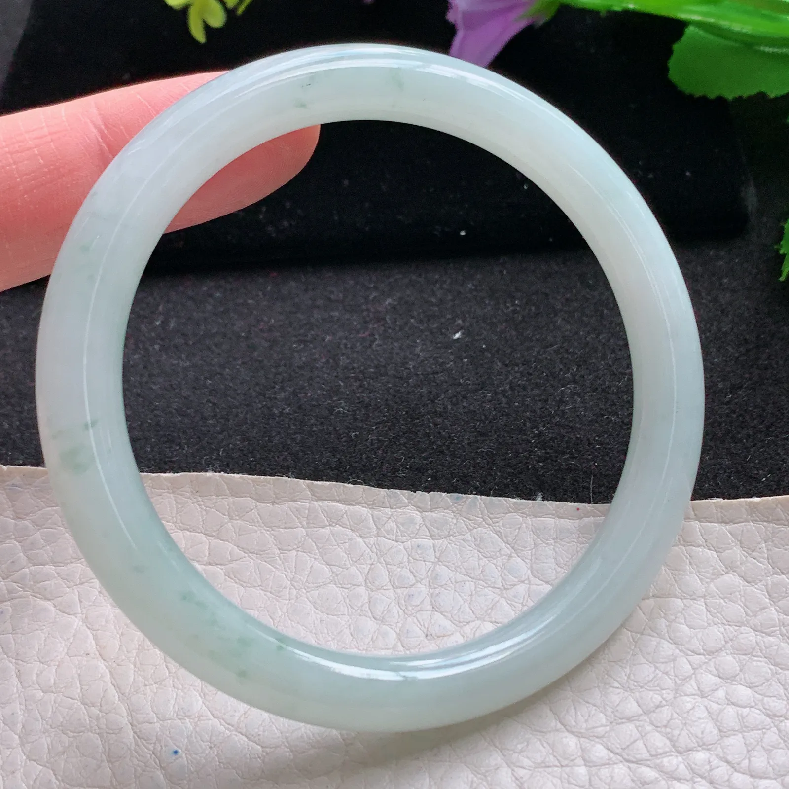 xx小圈口51*12.3*6.6平安镯 缅甸翡翠a货玉手镯飘绿秀气宽边玉手环
