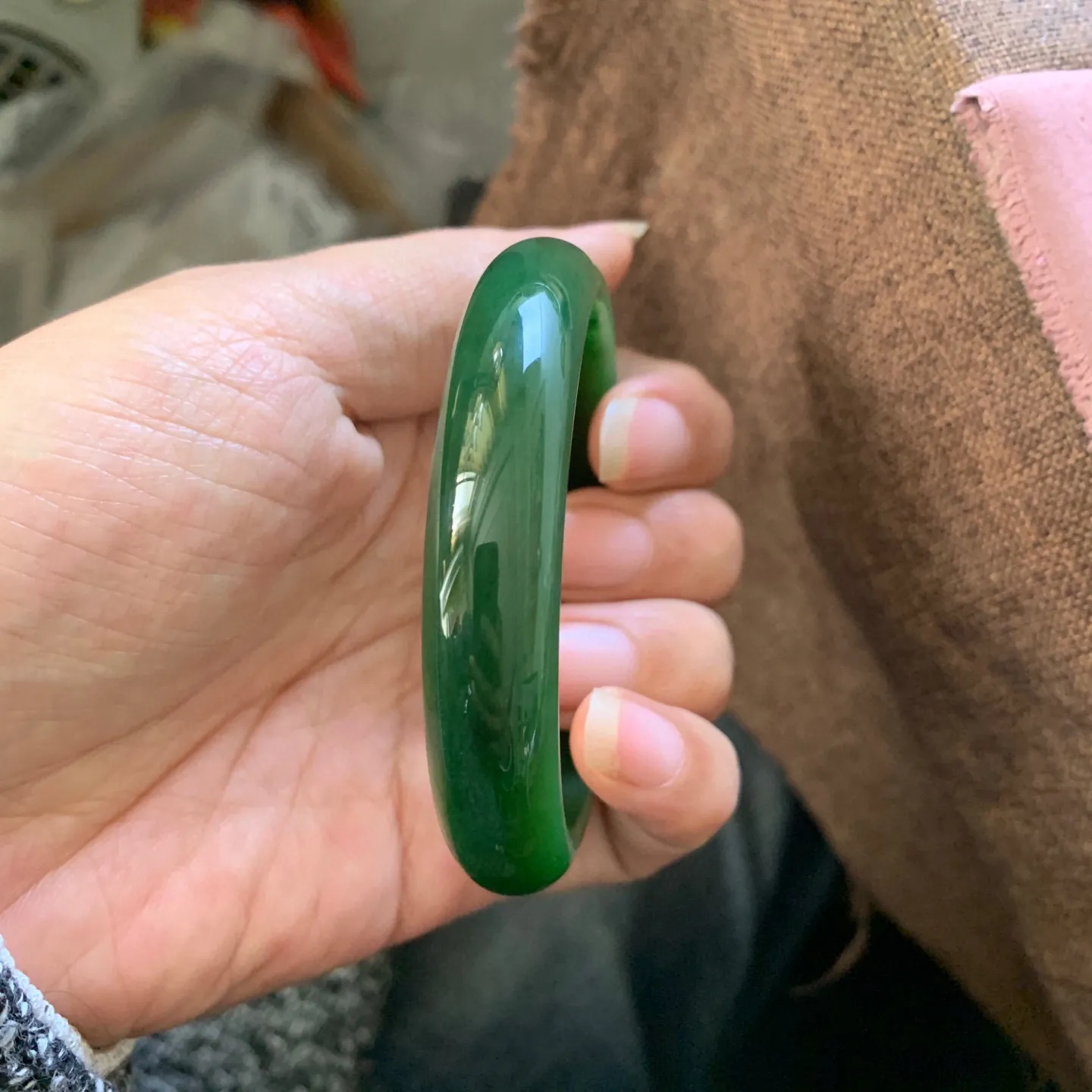 56圈口 和田玉青海翠翠青手镯。圈口56条宽12厚9重53克。玉质细腻油润。手推出油。佩戴高端典雅。