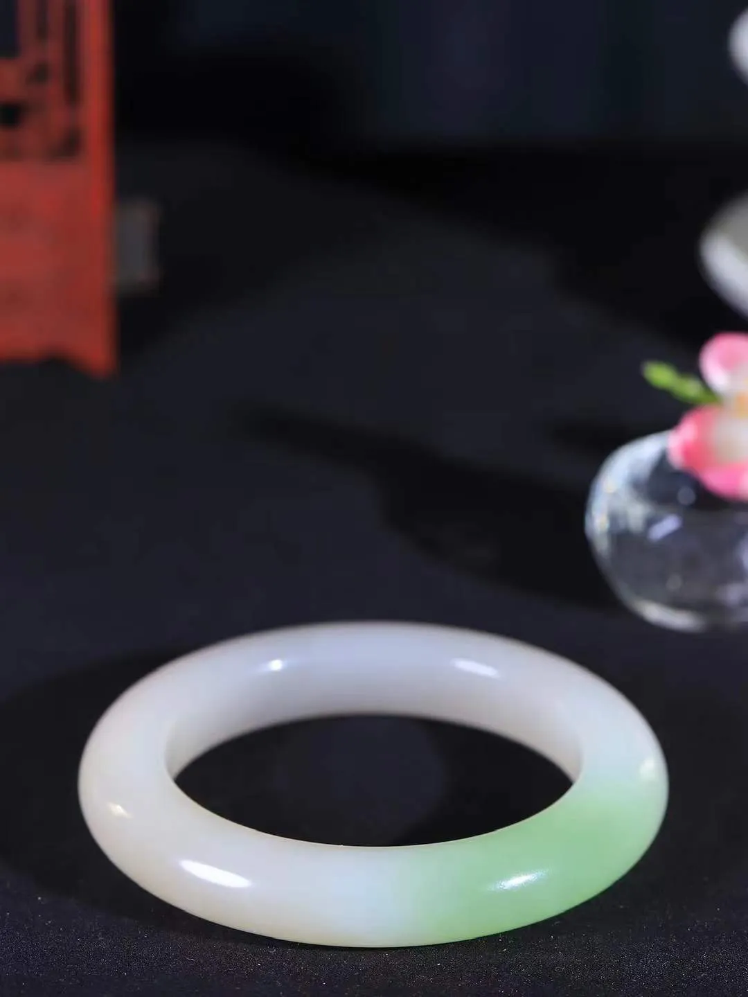 (三生有幸.手镯) 精品和田玉碧玉银杏叶手镯,玉质温润.油性上佳。三生有幸遇到你,始于初见,止