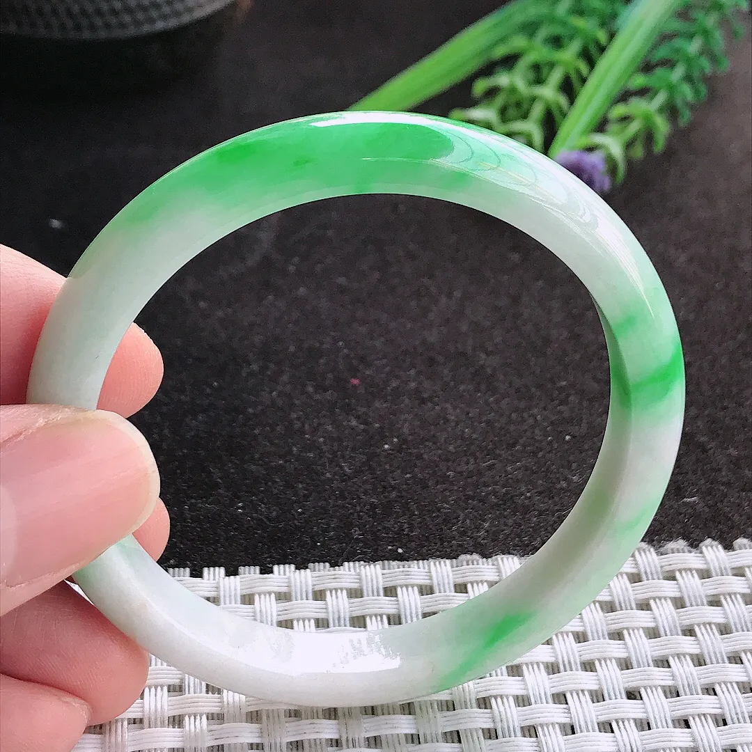 52.6圈飘绿玉镯翡翠好种色满色正圈手镯 59.75g