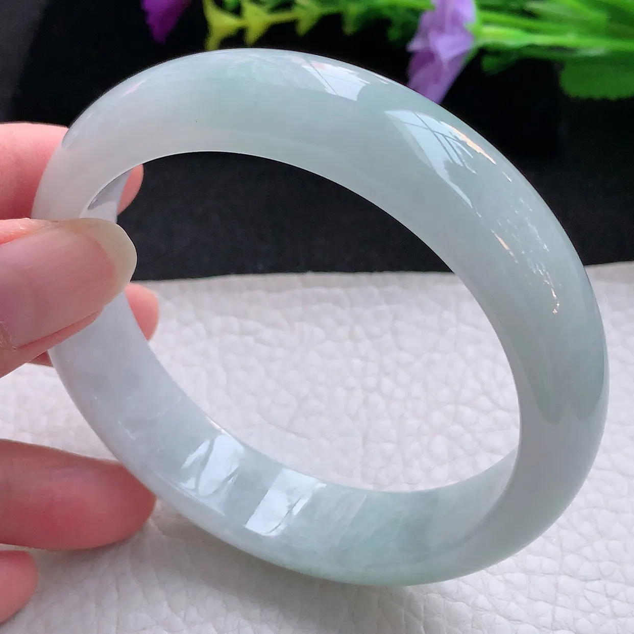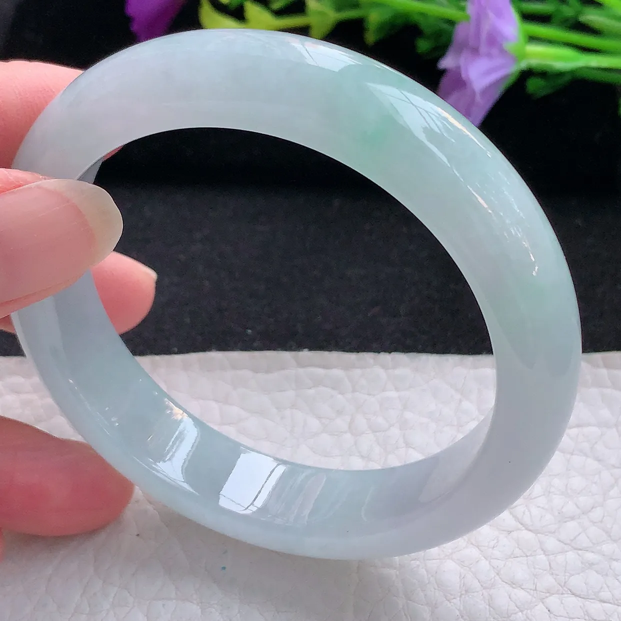 r实拍56.5*13.2*8.3平安镯 天然翡翠A货手镯冰透白月光宽边正圈玉镯子