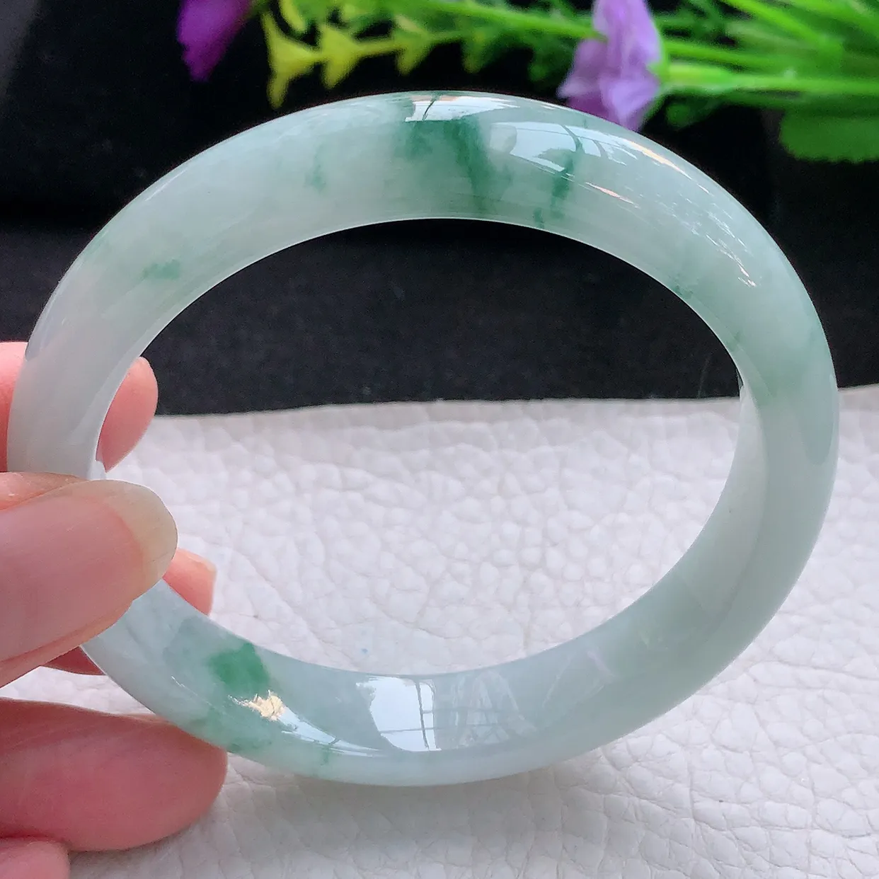 nr大圈口60*12.2*8平安镯 天然翡翠A货手镯飘花宽边正圈玉镯子