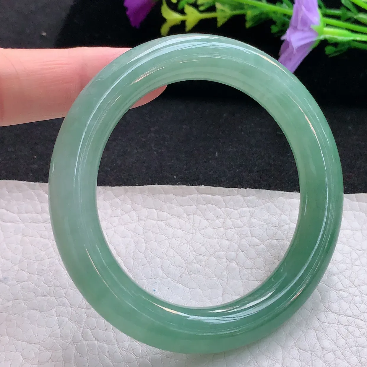 r实拍55*10.8圆条镯天然翡翠A货手镯满绿晴水正圈玉镯子福镯