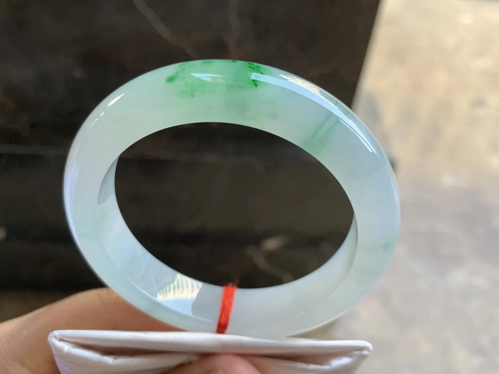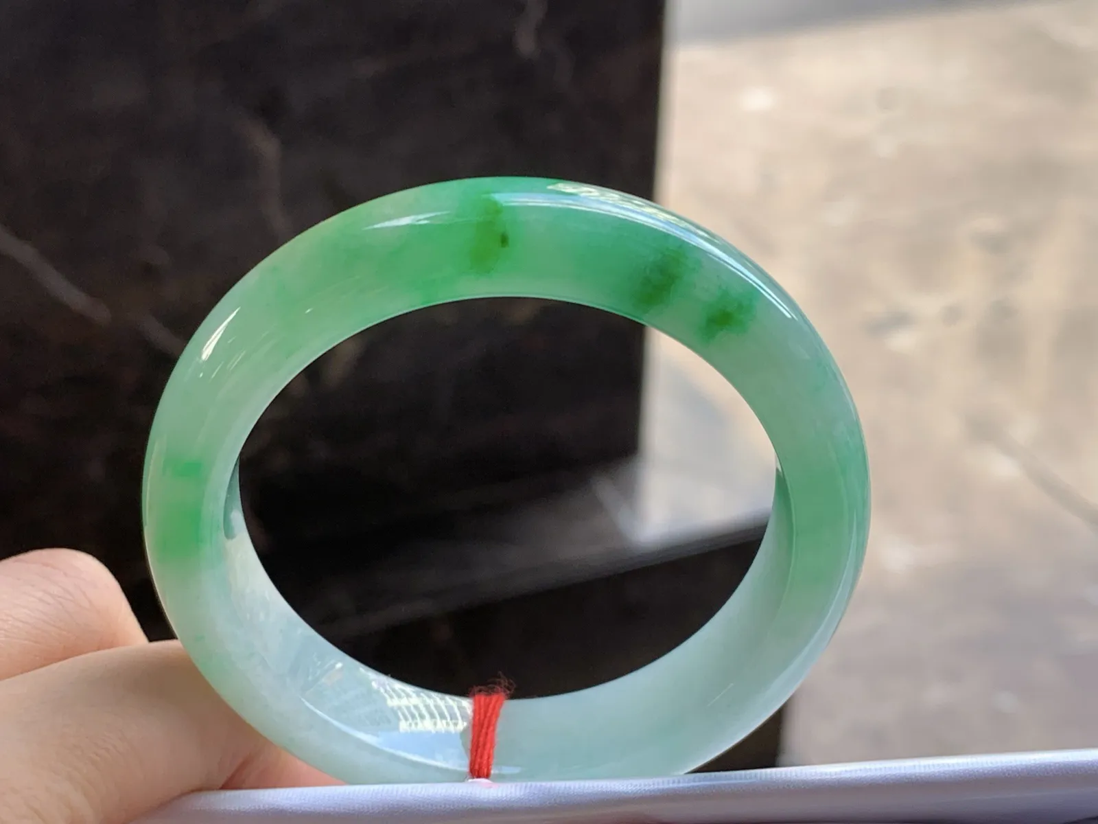 55.5-12.7-9mm 冰种飘绿手镯 水润光泽 花色漂亮