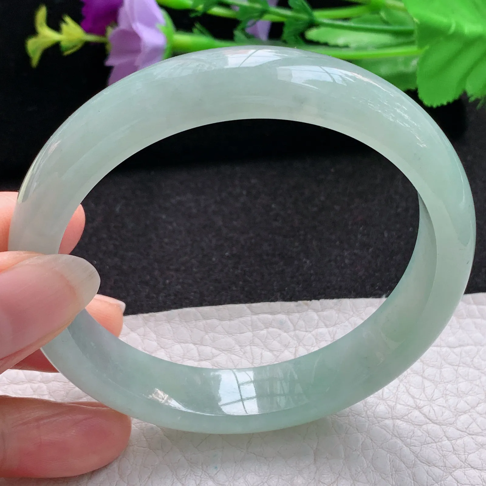 nr大圈口59.5*11.2*7.3平安镯 缅甸翡翠a货玉手镯白月光宽边玉手环