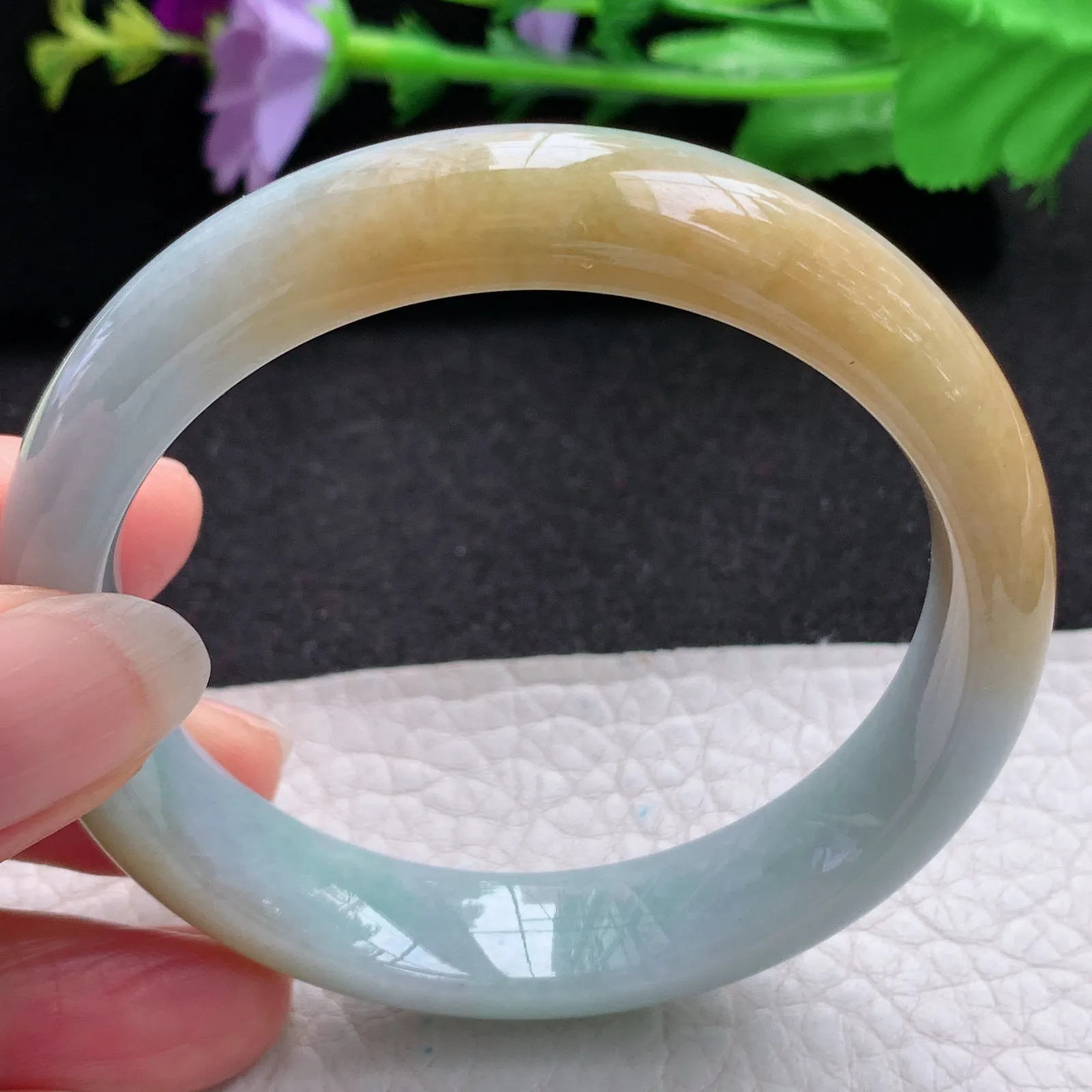 nr自然光55*12.3*7.6平安镯 缅甸翡翠a货玉手镯双彩水润宽边玉手环
