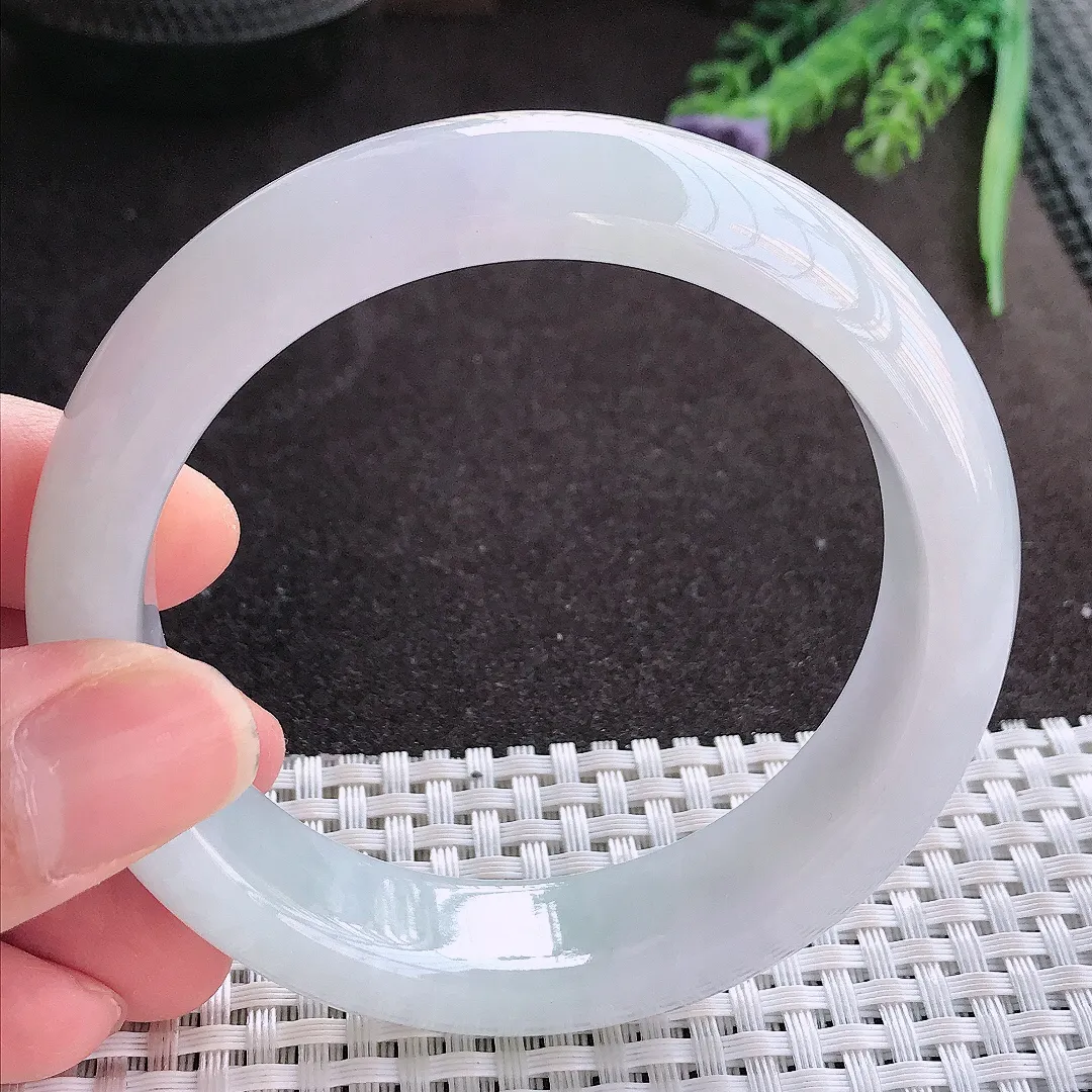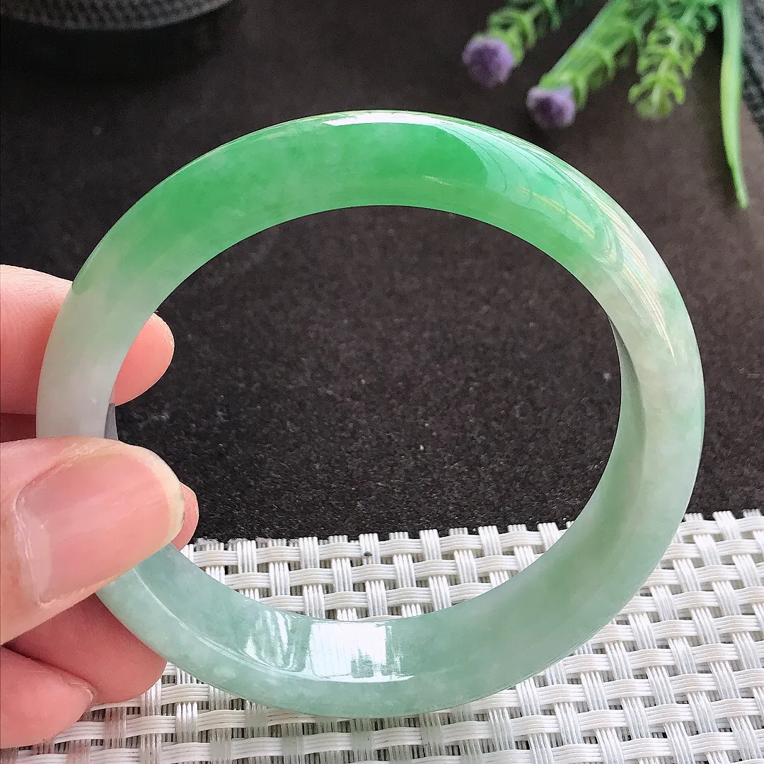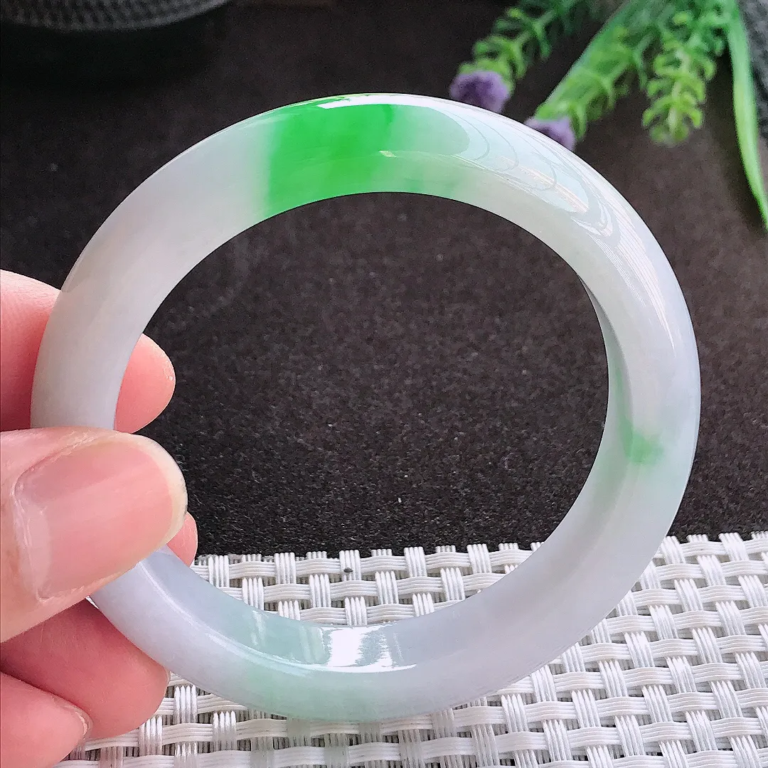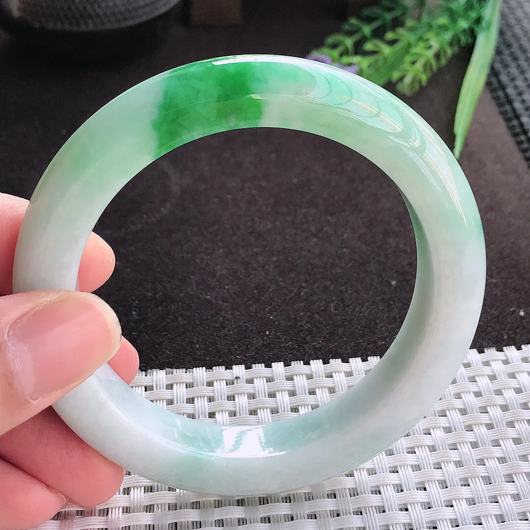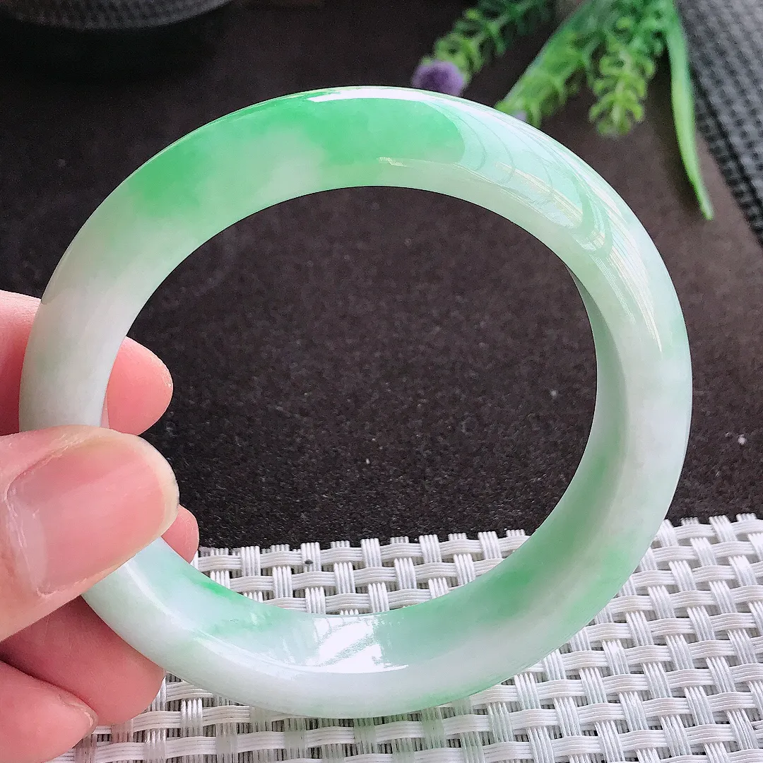 实拍A货翡翠57/13.1/7.8老坑冰润飘绿手镯翡翠玉镯子平安镯