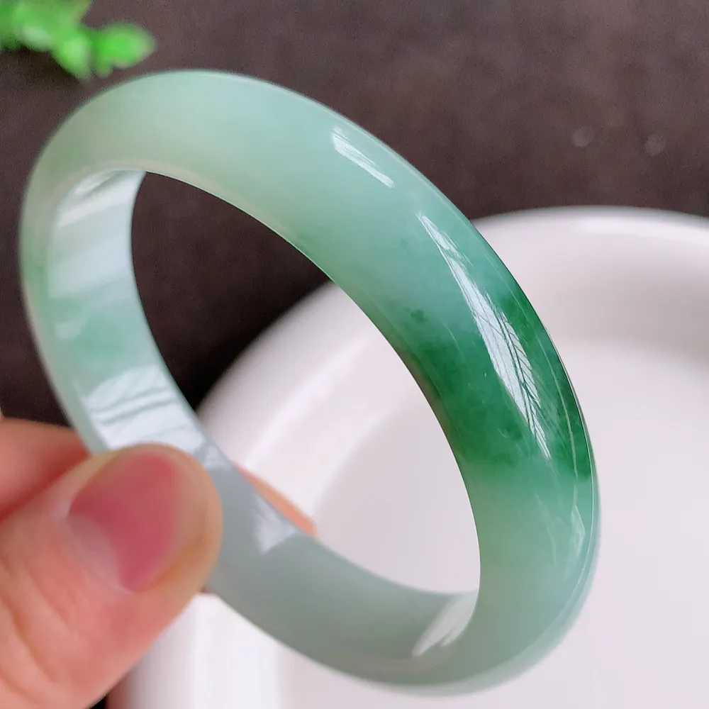正圈55.7圈口,翡翠糯化种春带彩手镯