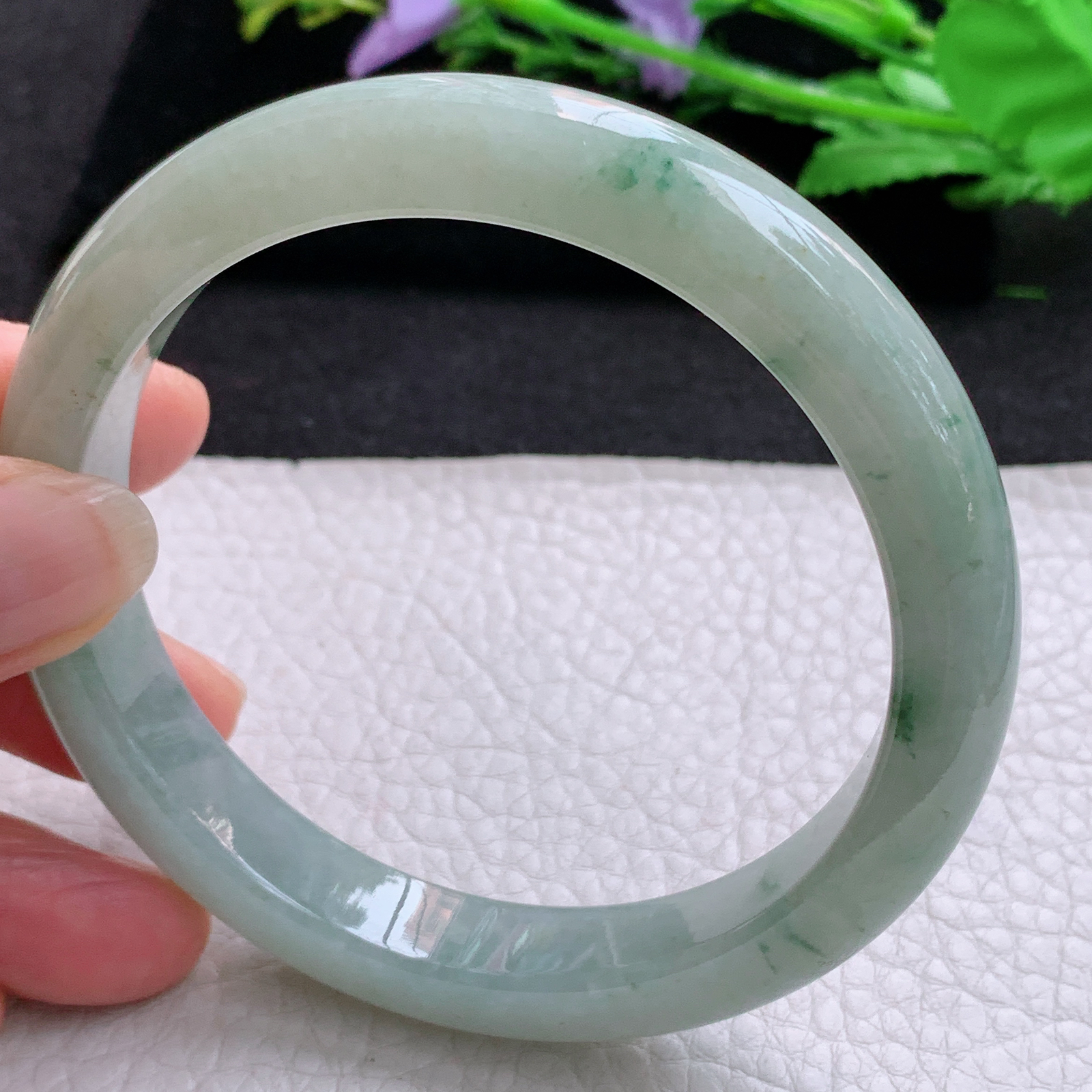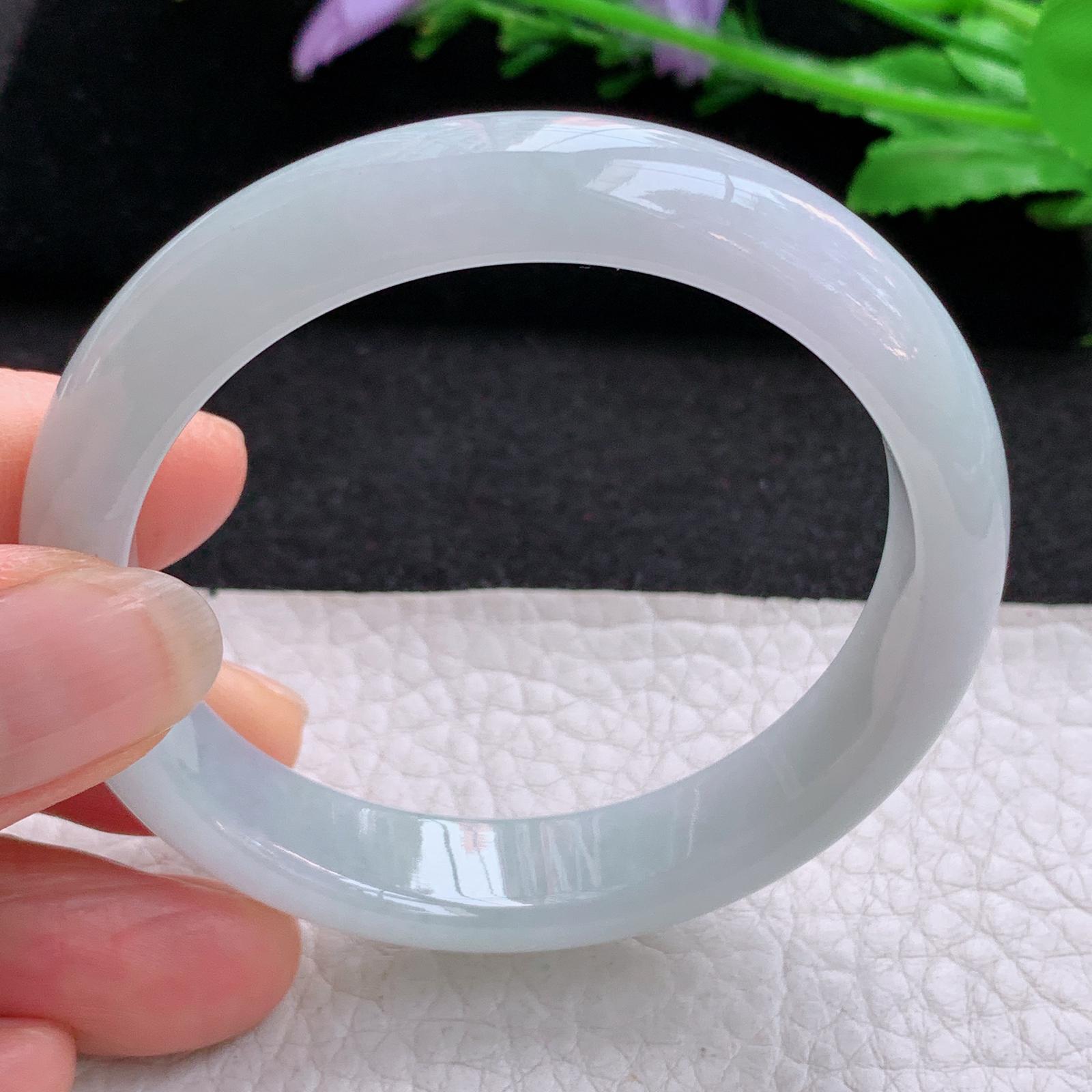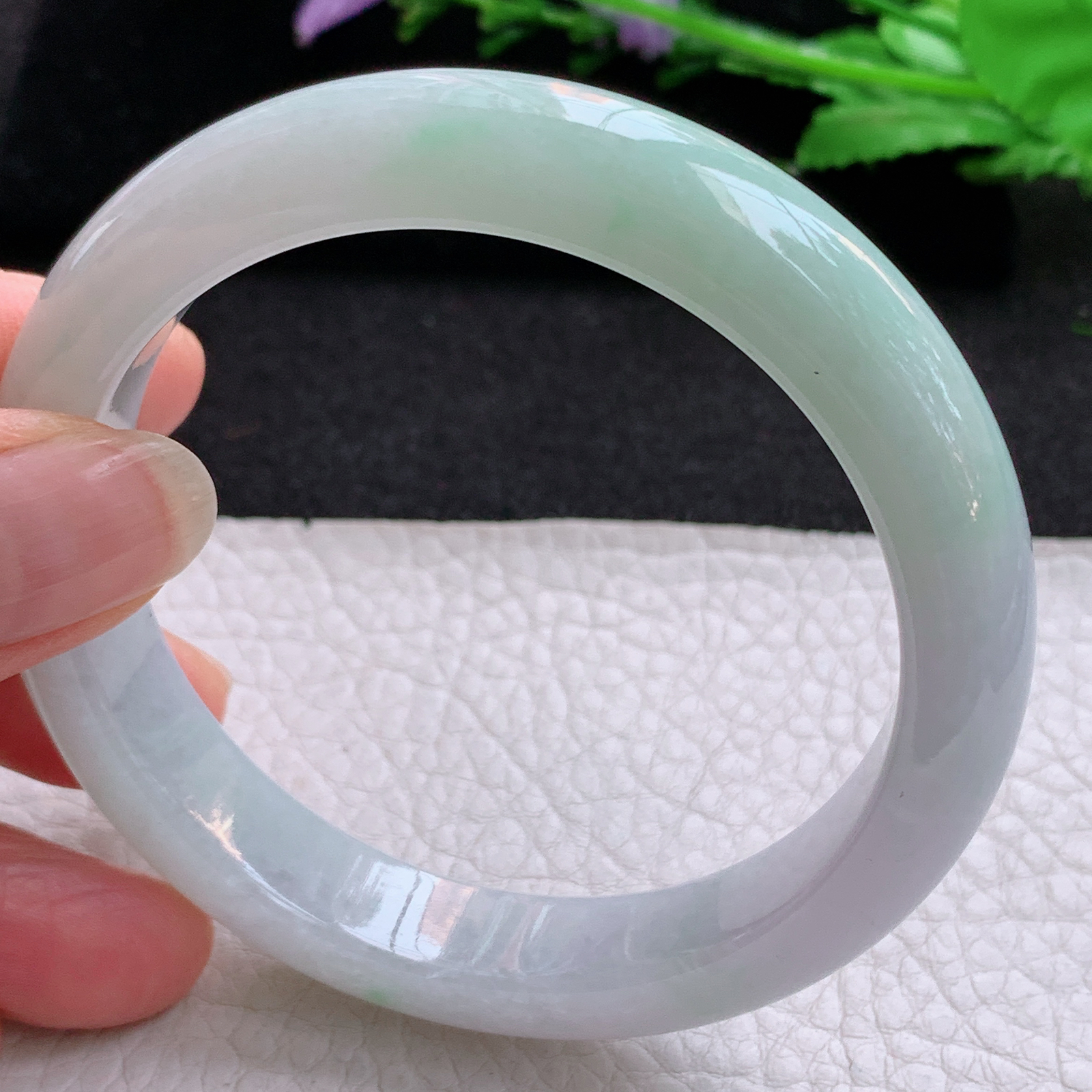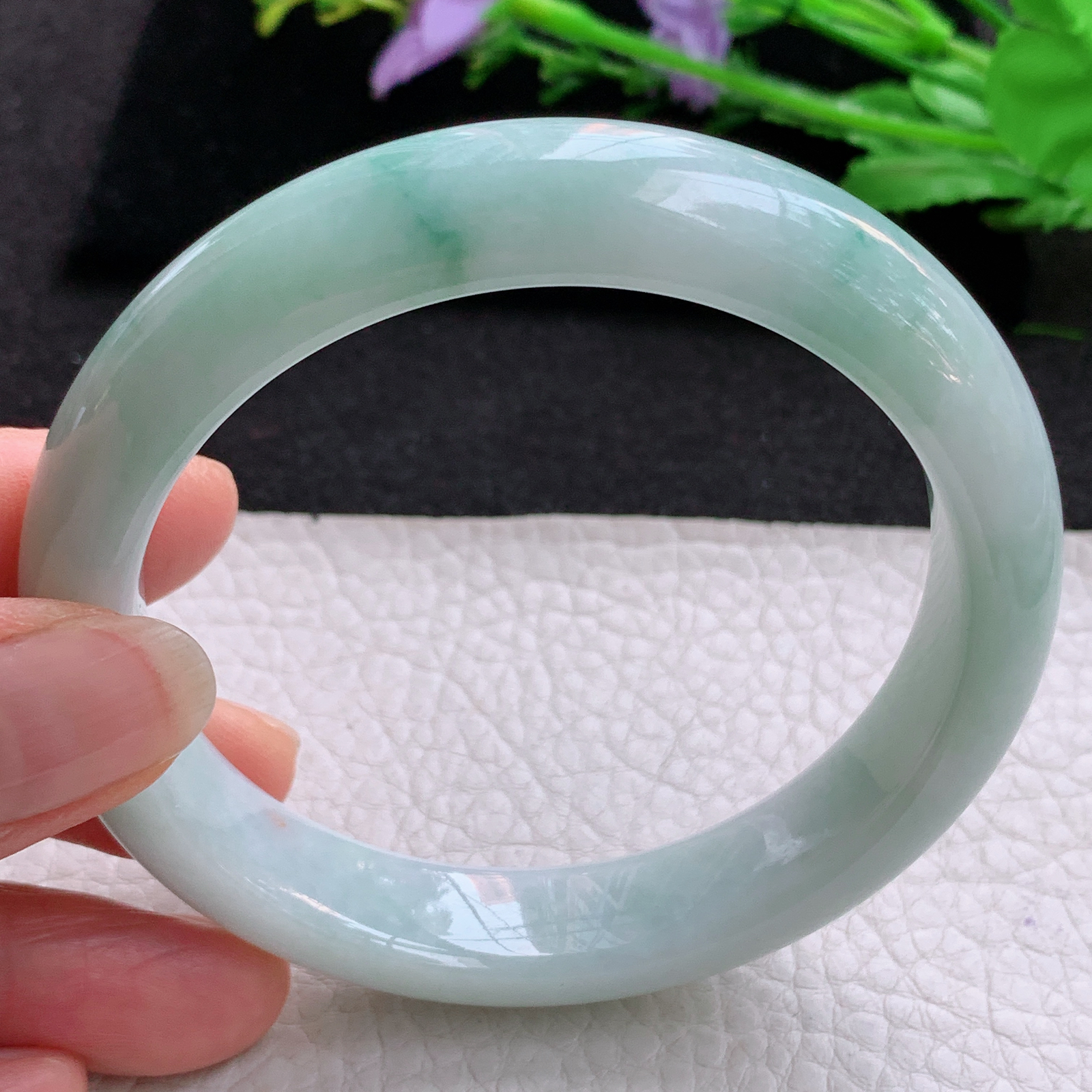 xx大圈口63*11.5*8.8平安镯 天然缅甸翡翠A货冰胶飘花宽边玉手环