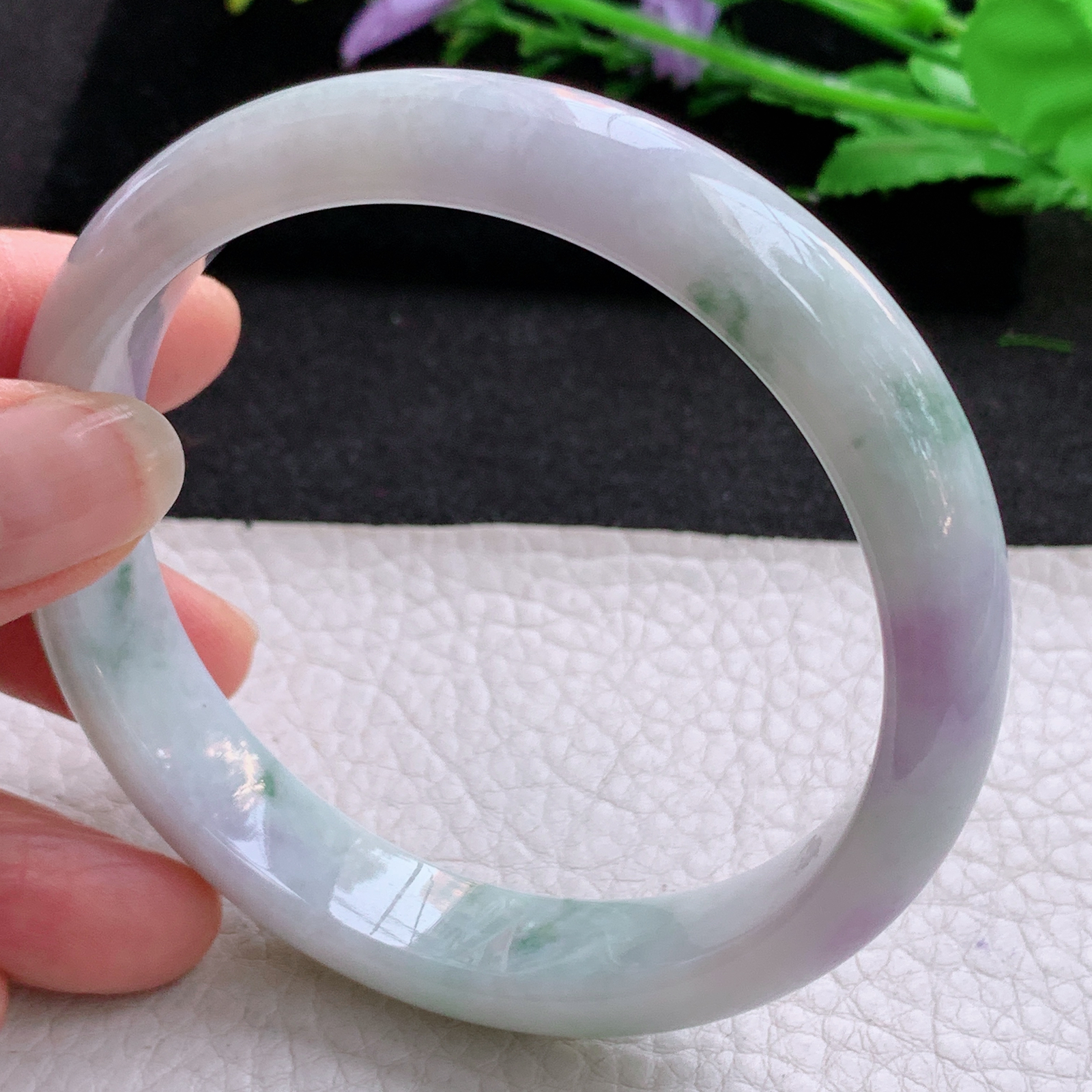 p大圈口62.5*13*8平安镯 天然缅甸翡翠A货春带彩水润宽边玉手环