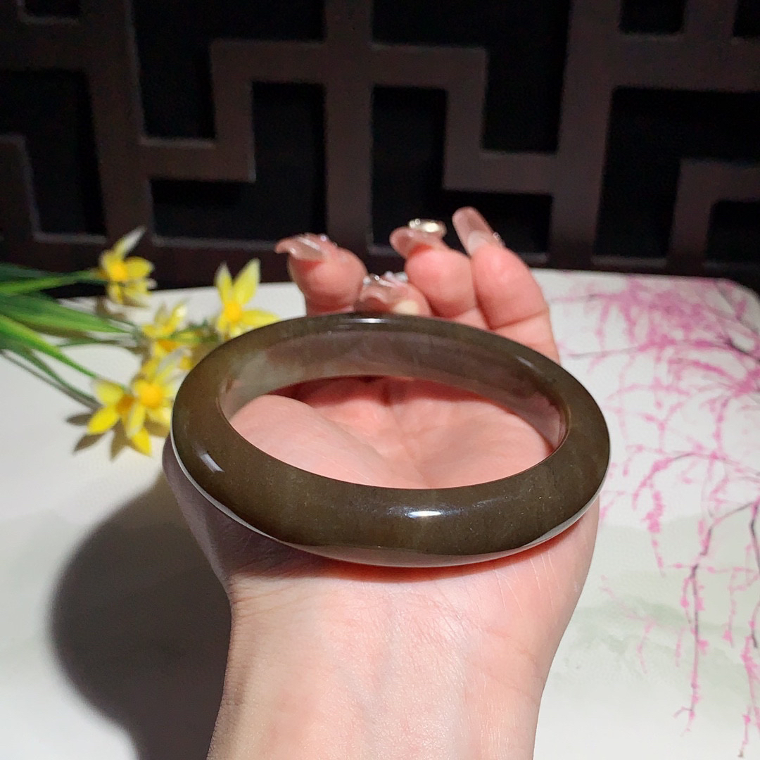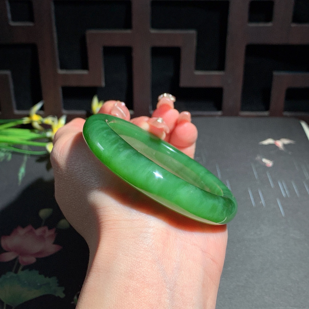 实拍天然翡翠56.5/12.4/8老坑精美温润飘阳绿手镯翡翠玉镯手环