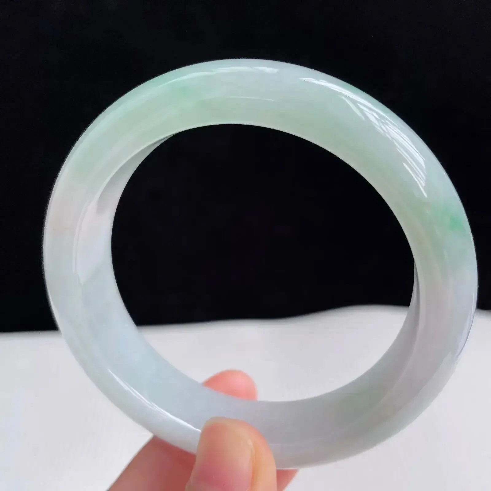 58.7mm自然光拍摄天然翡翠A货飘绿好种水正圈手镯 57.56克