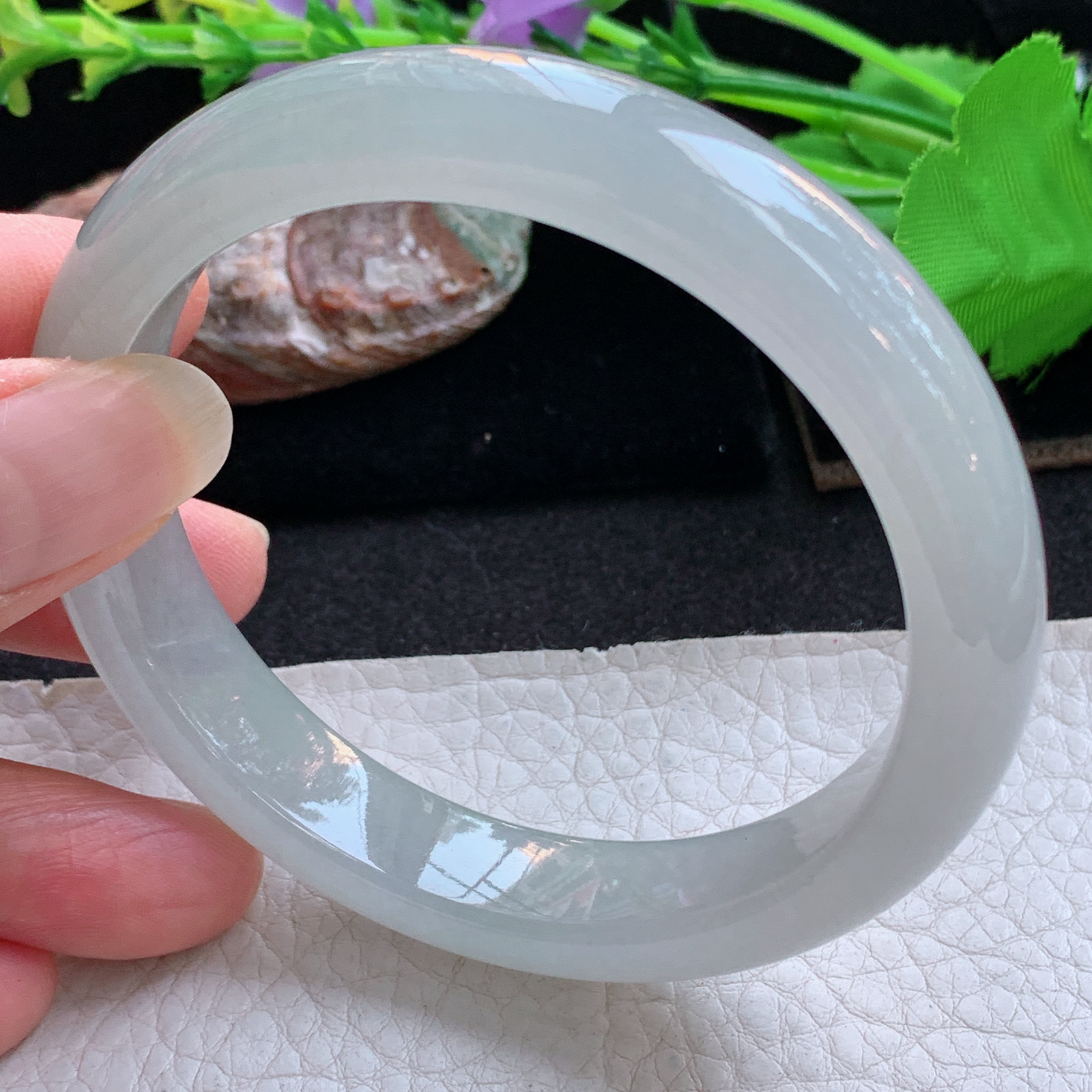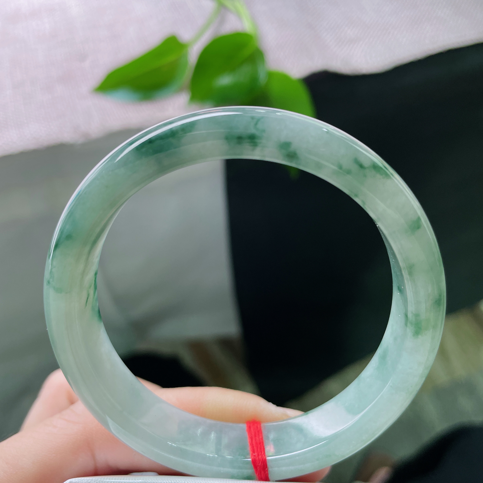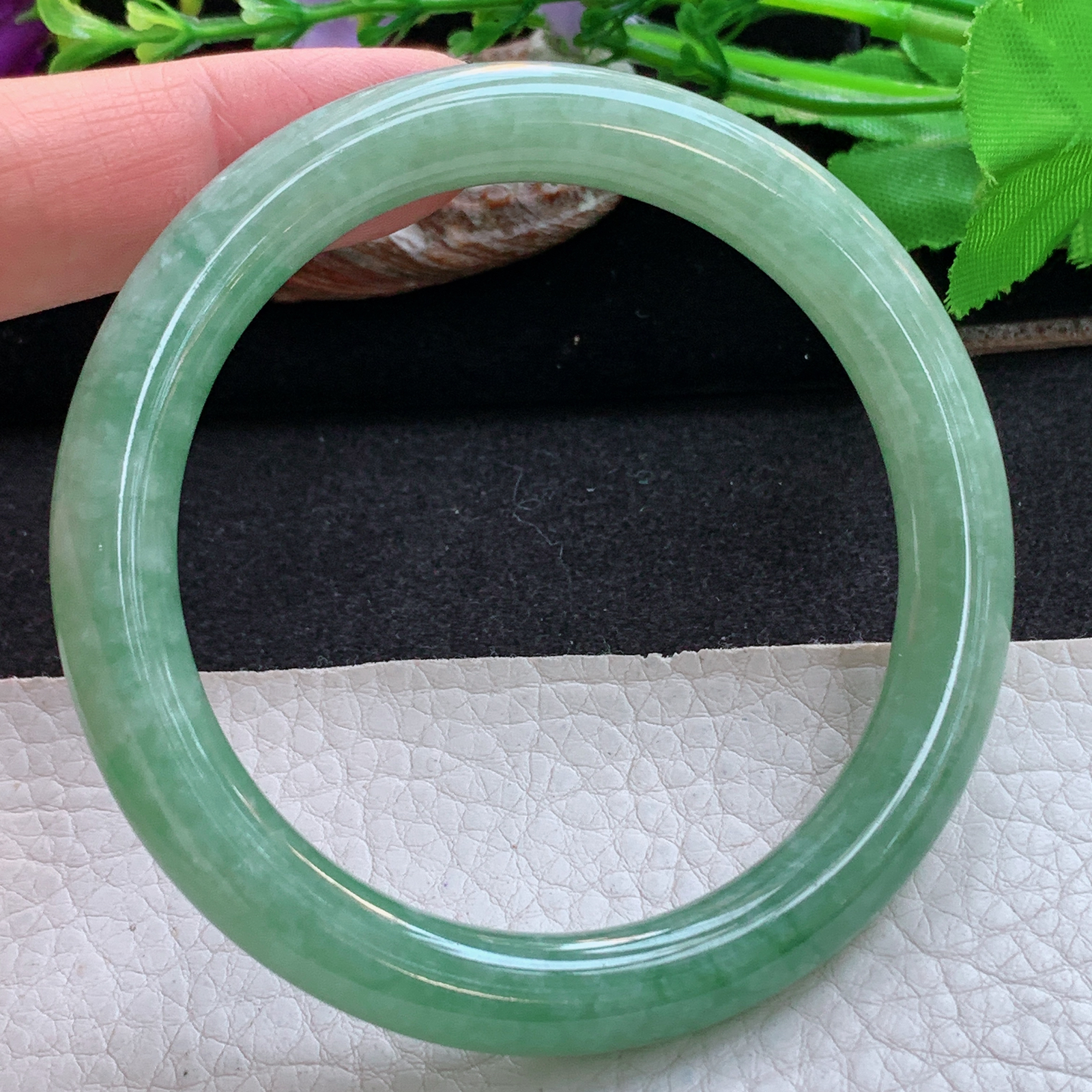 58/9.2,飘绿圆条,翠色鲜艳夺目,光彩照人,肉质细腻干净