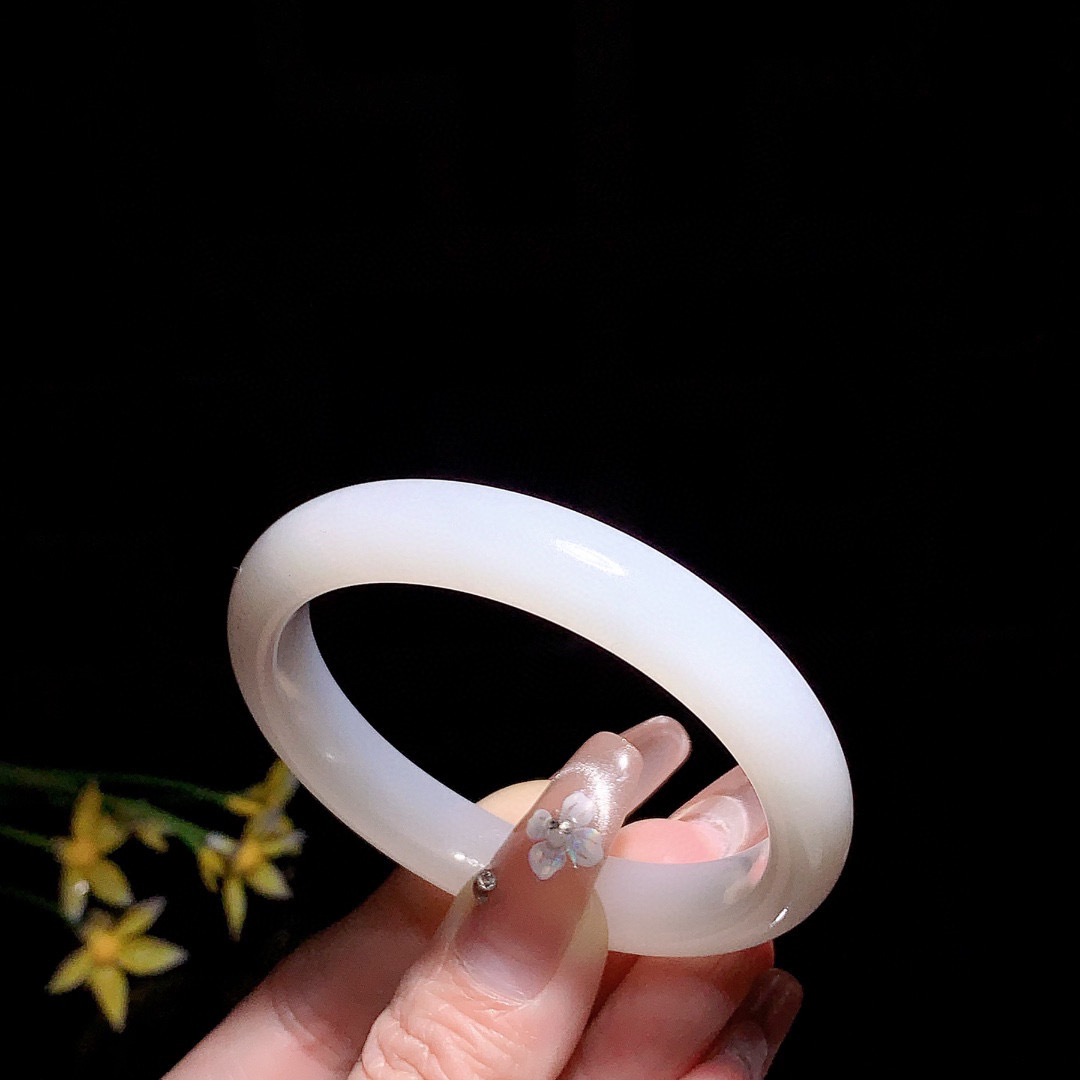 和田玉57圈口紫罗兰色手镯!玉质细腻油润 底色纯净 无裂无杂 脂粉好,品质好!