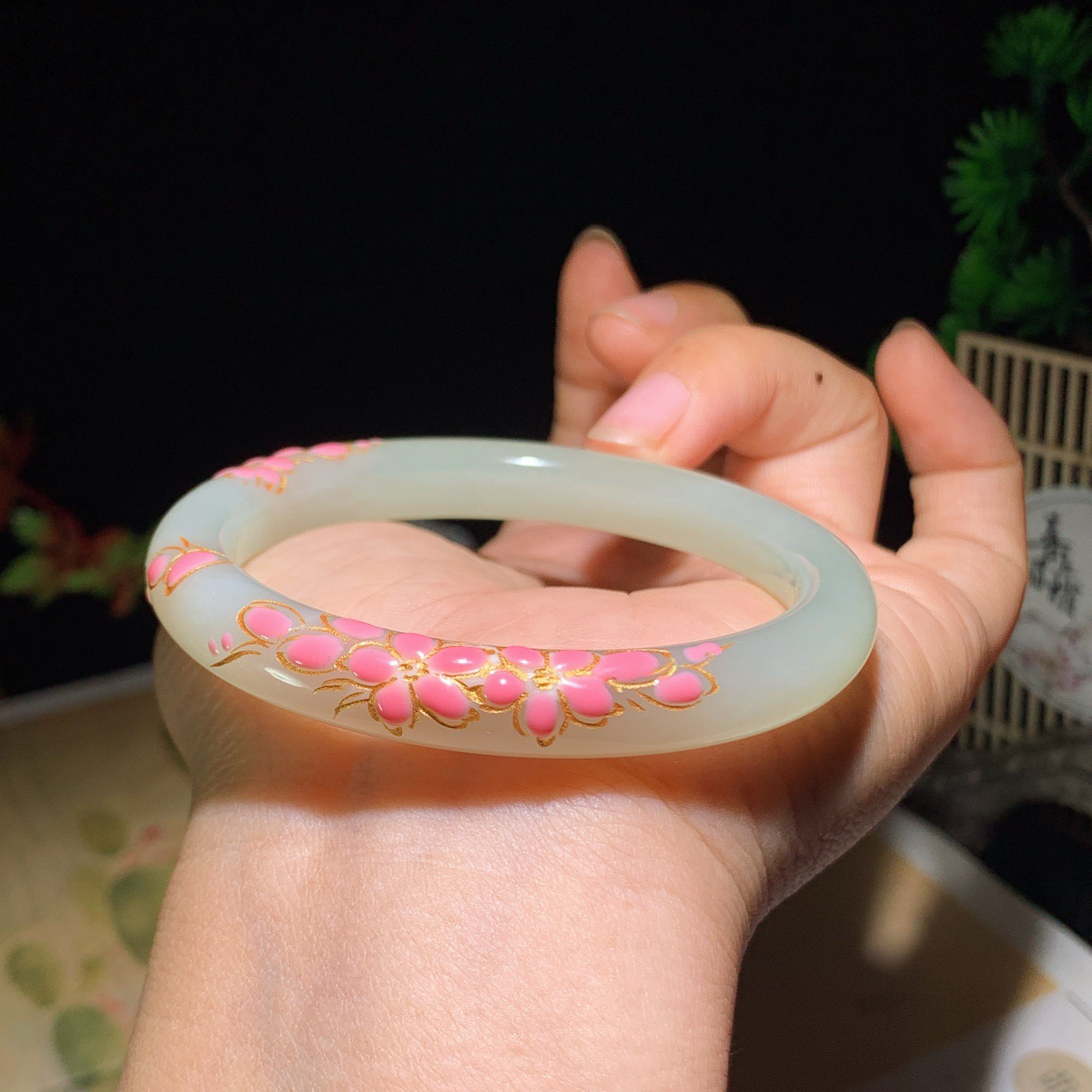 尺寸53.6/12.1/8.4,冰飘花手镯 水润细腻 清新甜美 冰透