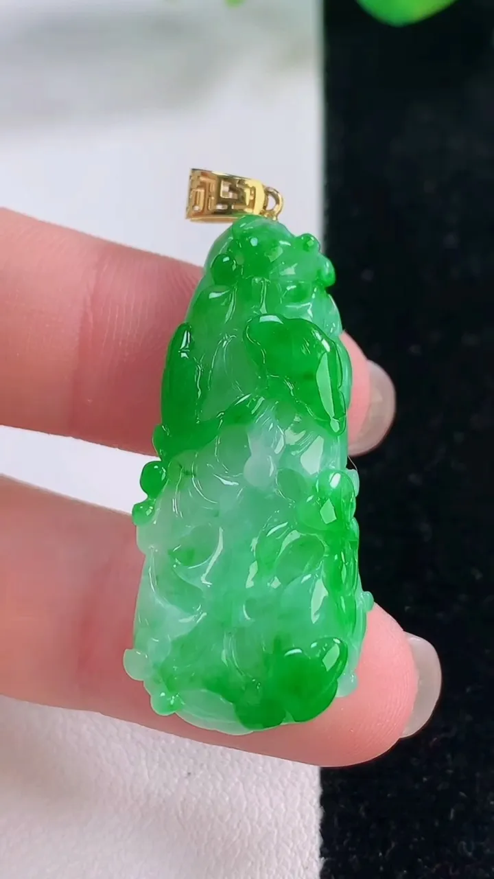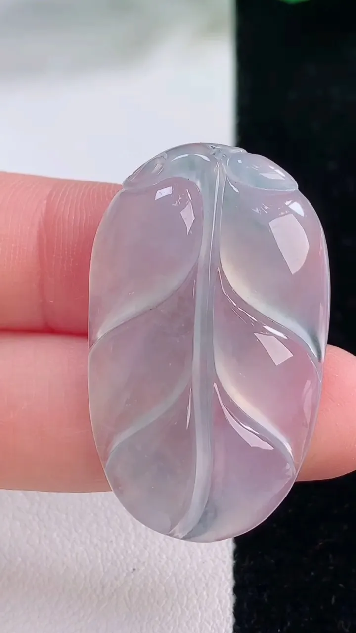 天然A货翡翠冰种飘花金枝玉叶 叶子吊坠,尺寸36.7-22.2-4.6,重量:7.34g 12月2日