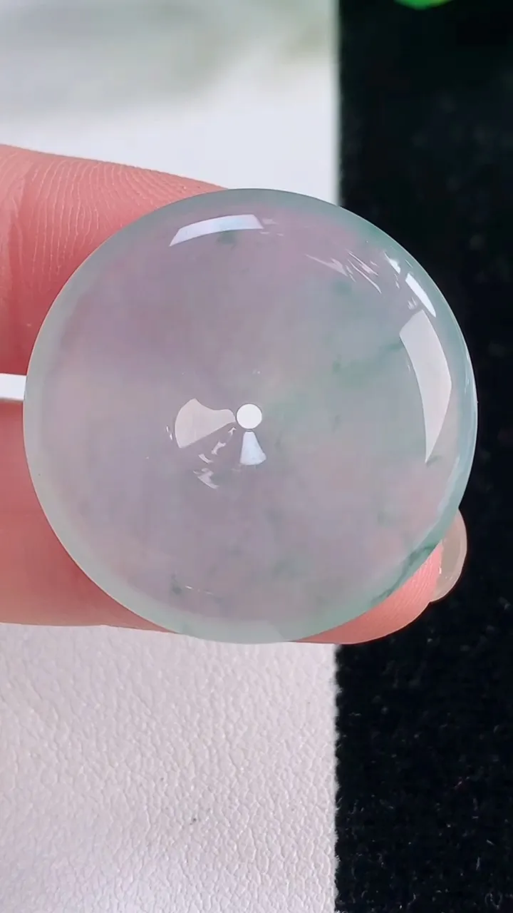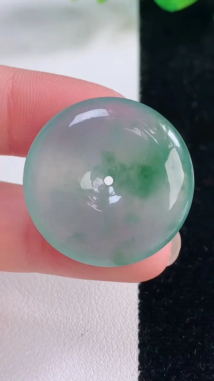 天然A货翡翠冰种飘花平安扣吊坠,尺寸28.4-5.4,重量:9.43g 12月2日