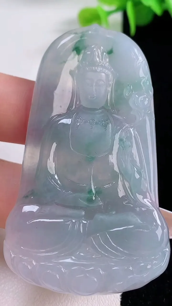 天然A货翡翠种飘花大势至观音菩萨吊坠,尺寸61.5-36.7-5.2,重量:24.94g 12月5日