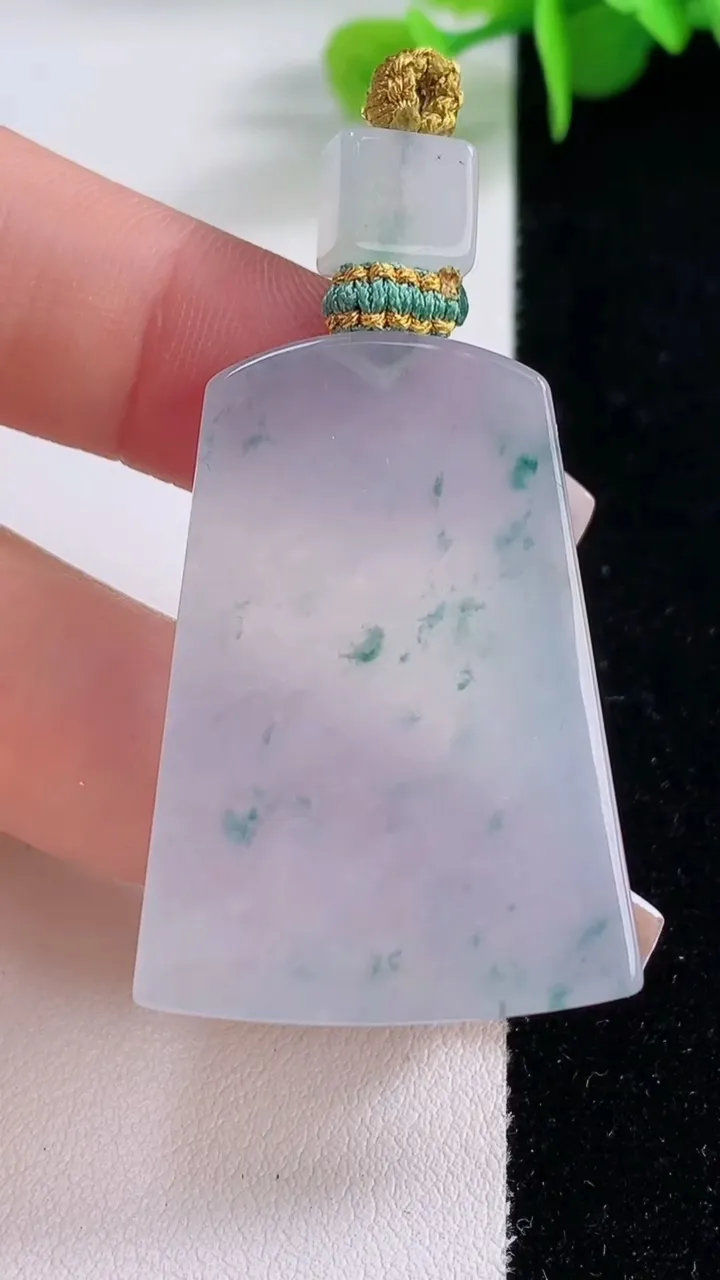 天然A货翡翠种飘花无事牌吊坠,尺寸39-27.7-5,重量:16.85g 12月5日