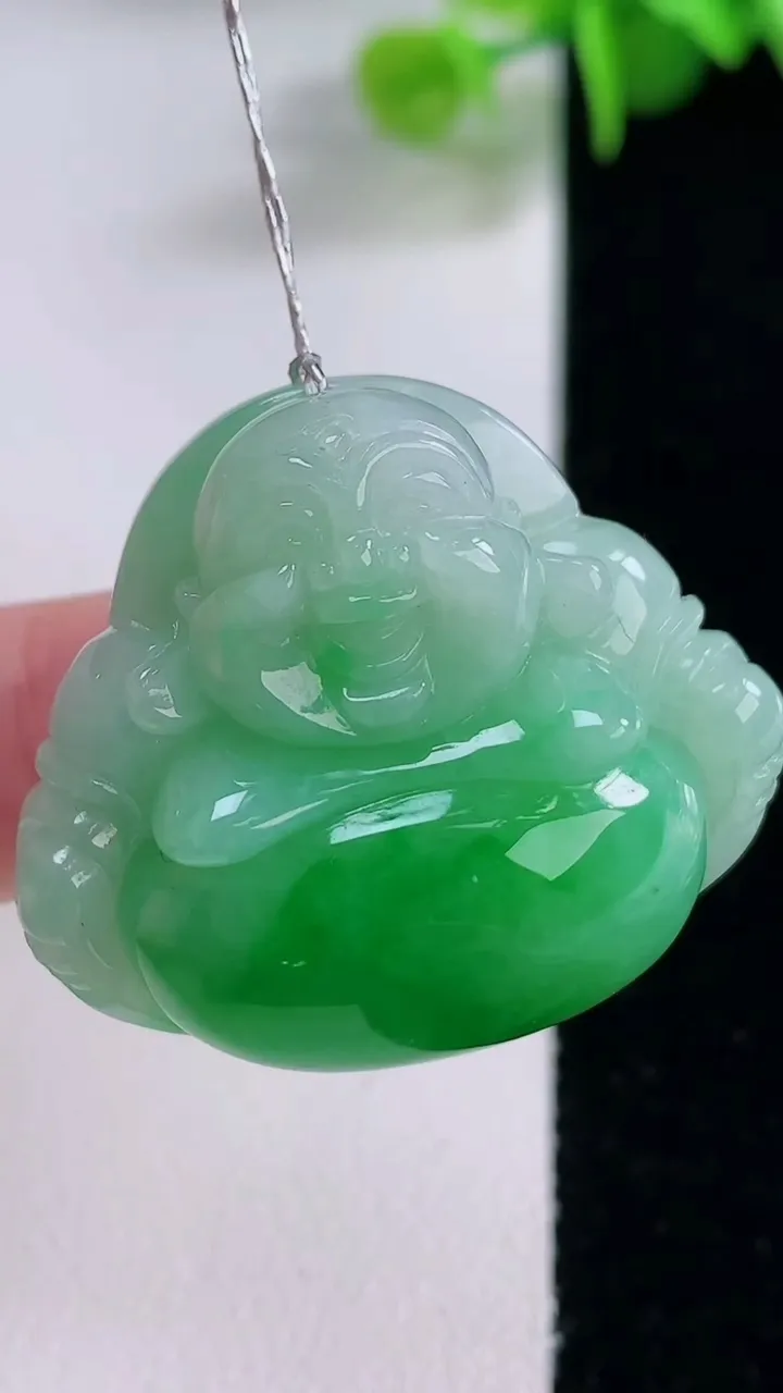 天然A货翡翠佛公吊坠,尺寸28.7-33-11.8,重量:18.30g 12月5日