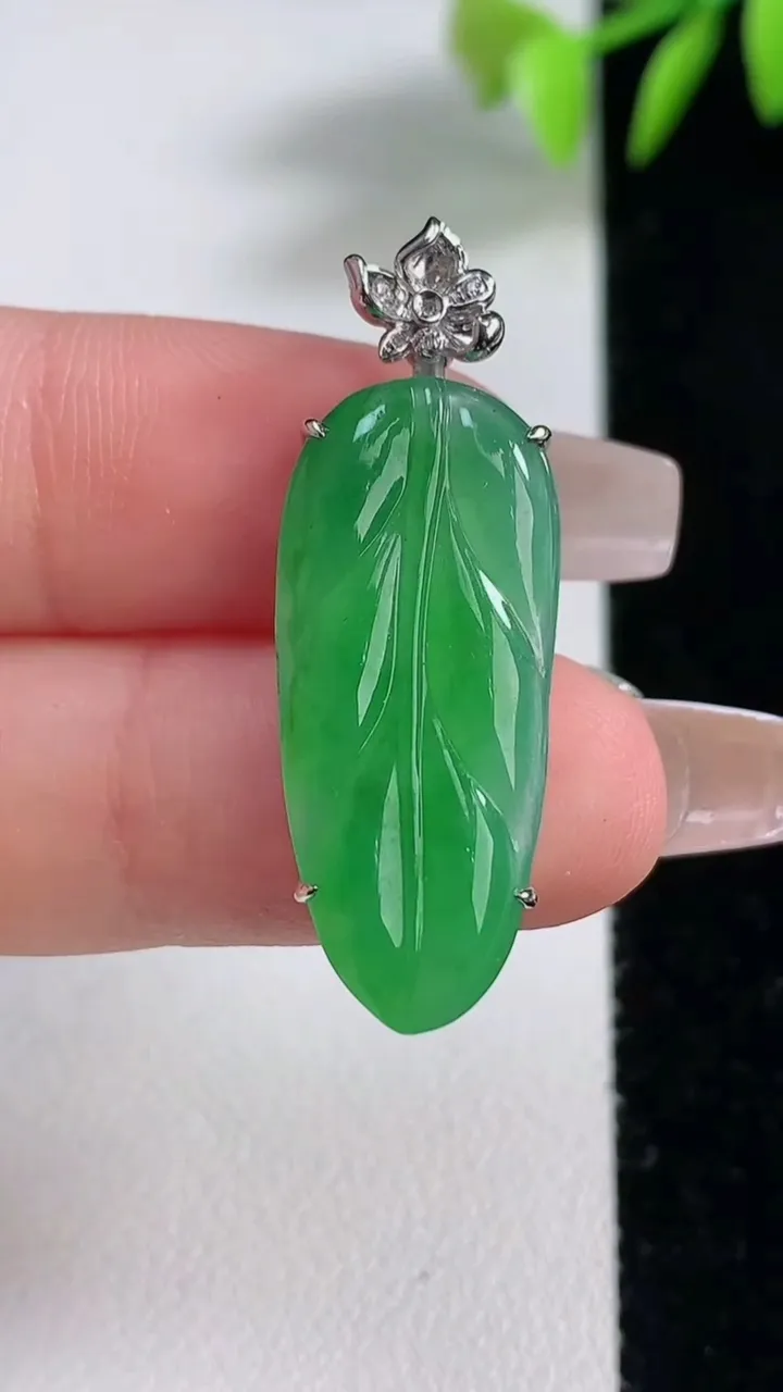 天然A货翡翠金枝玉叶 叶子吊坠,尺寸47.6-25.5-4.1,重:8.47g 12月11日