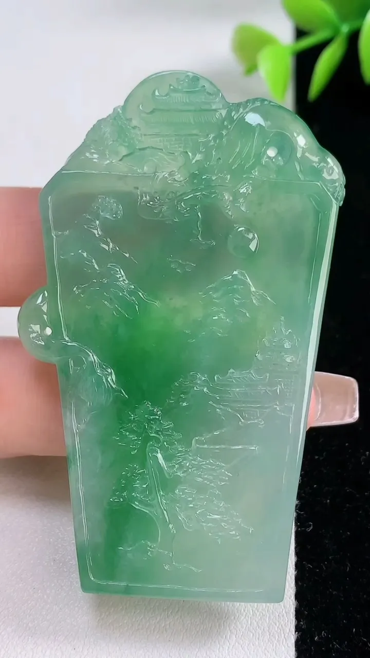 天然A货翡翠金枝玉叶 叶子吊坠,尺寸44.5-23.6-4.5,重:8.97g 12月11日