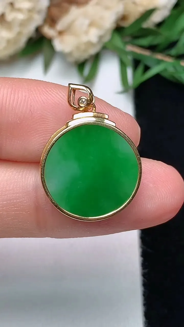 天然A货翡翠无事牌吊坠,尺寸54.6-44-24-4.8,重量:15.76g 12月14日