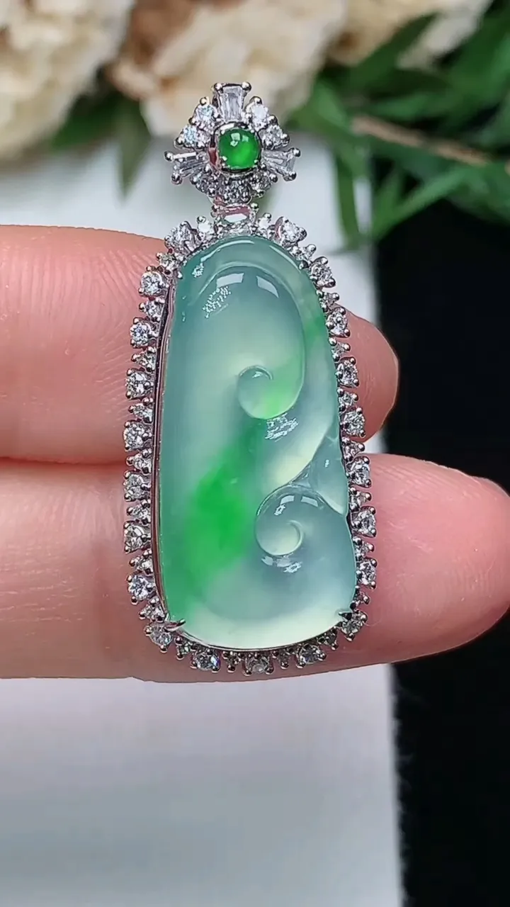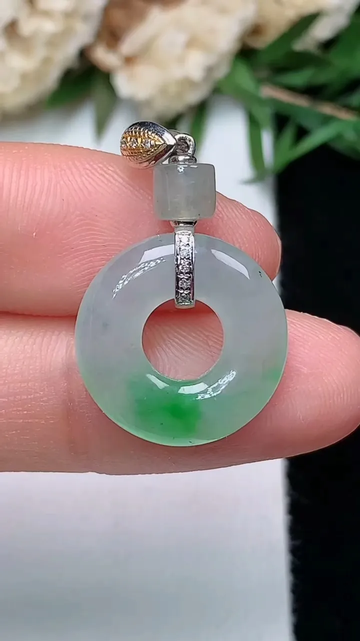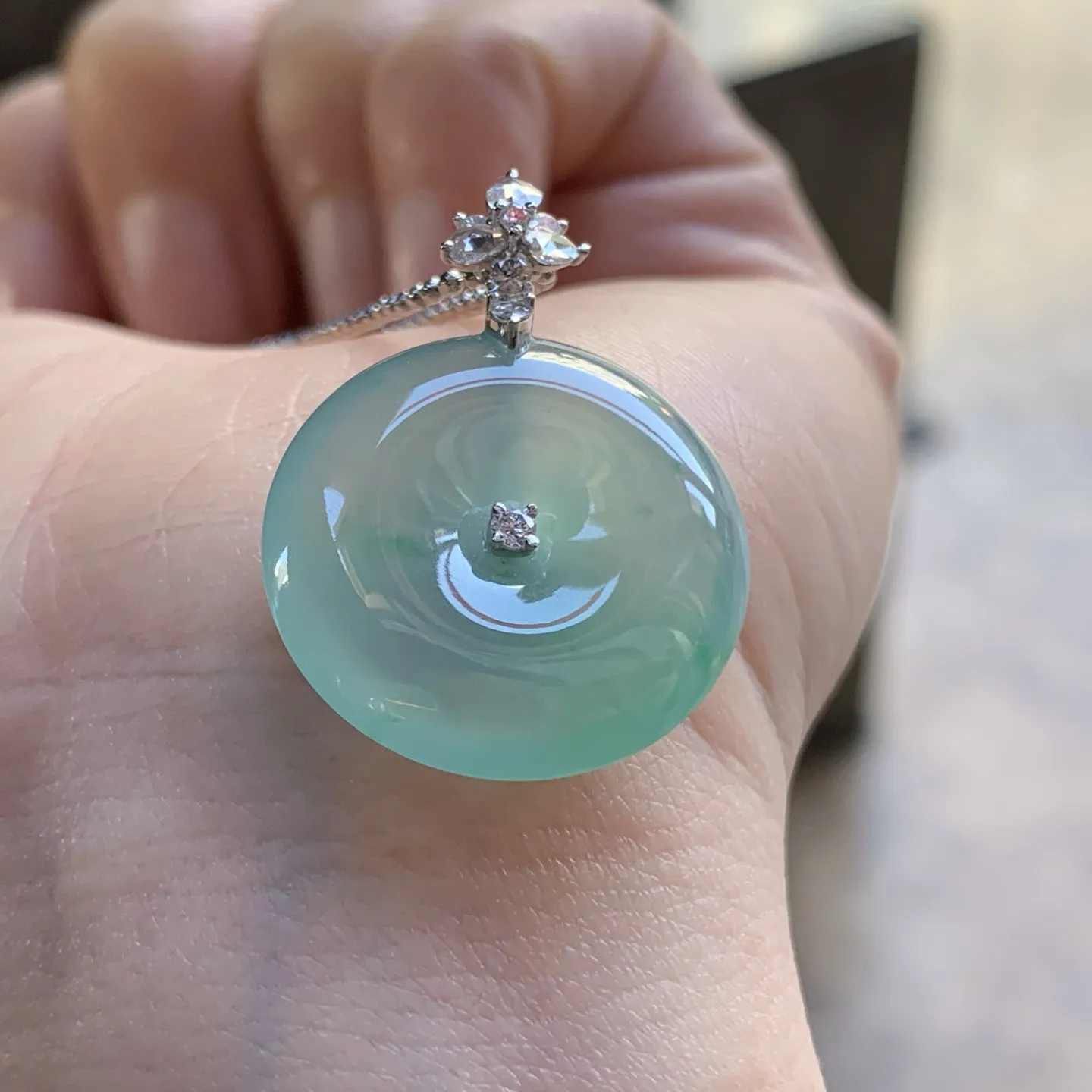 【低价放漏】平安扣吊坠,翡翠冰透飘花肥美平安扣吊坠,种水好,底子干净,玉质细腻莹润,雕工精美,寓意吉祥,佩戴时尚大方,尺寸:29.6*5.6mm,重9.68克