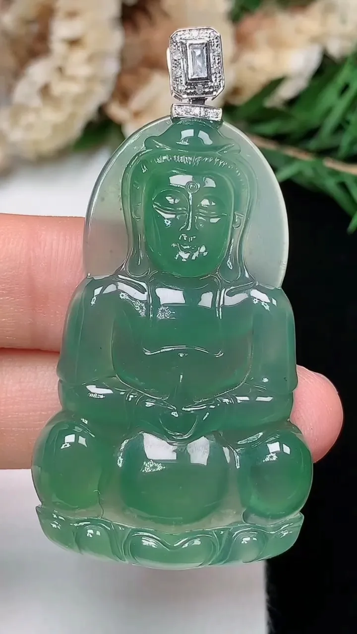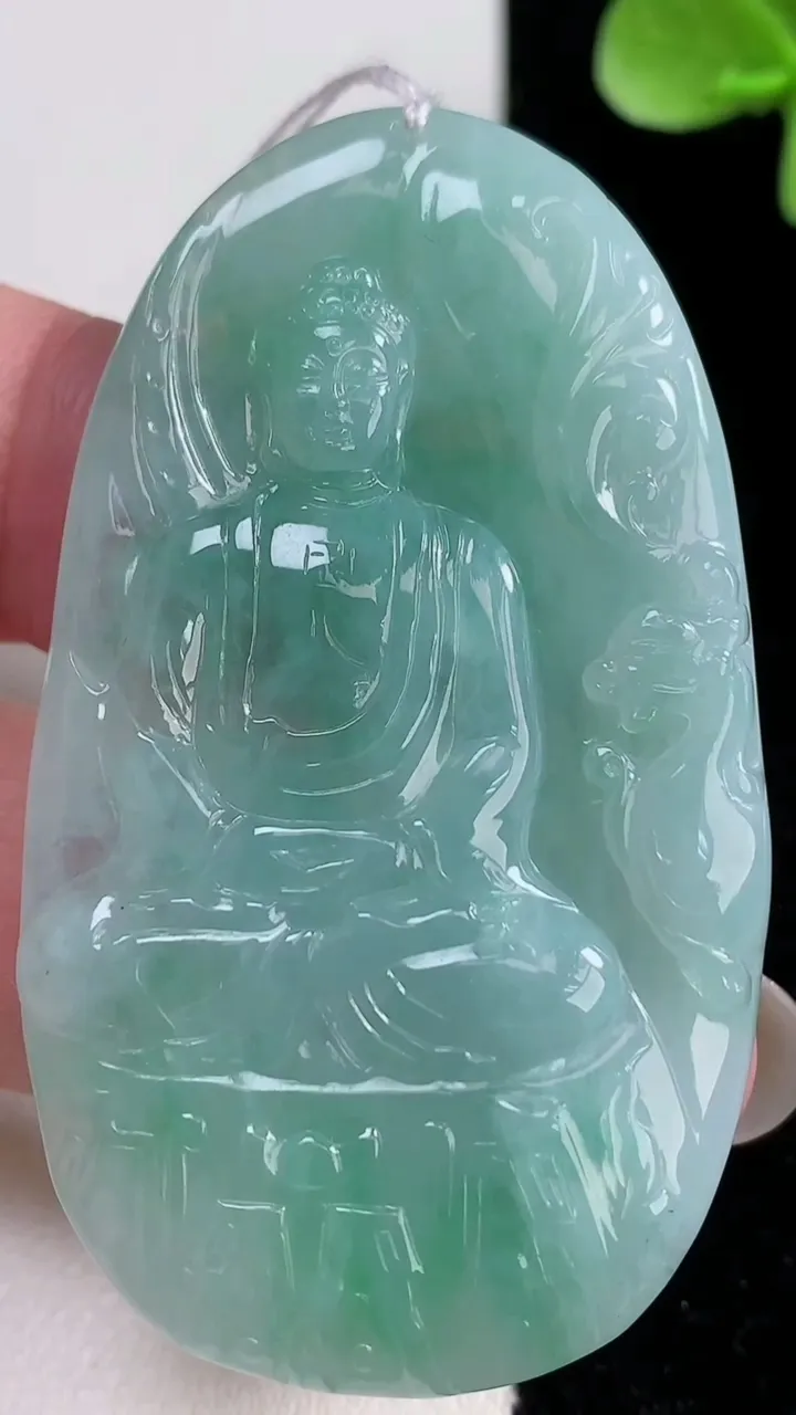 天然A货翡翠大日如来吊坠,尺寸57.3-33-5.3,重量:24.09g 12月14日