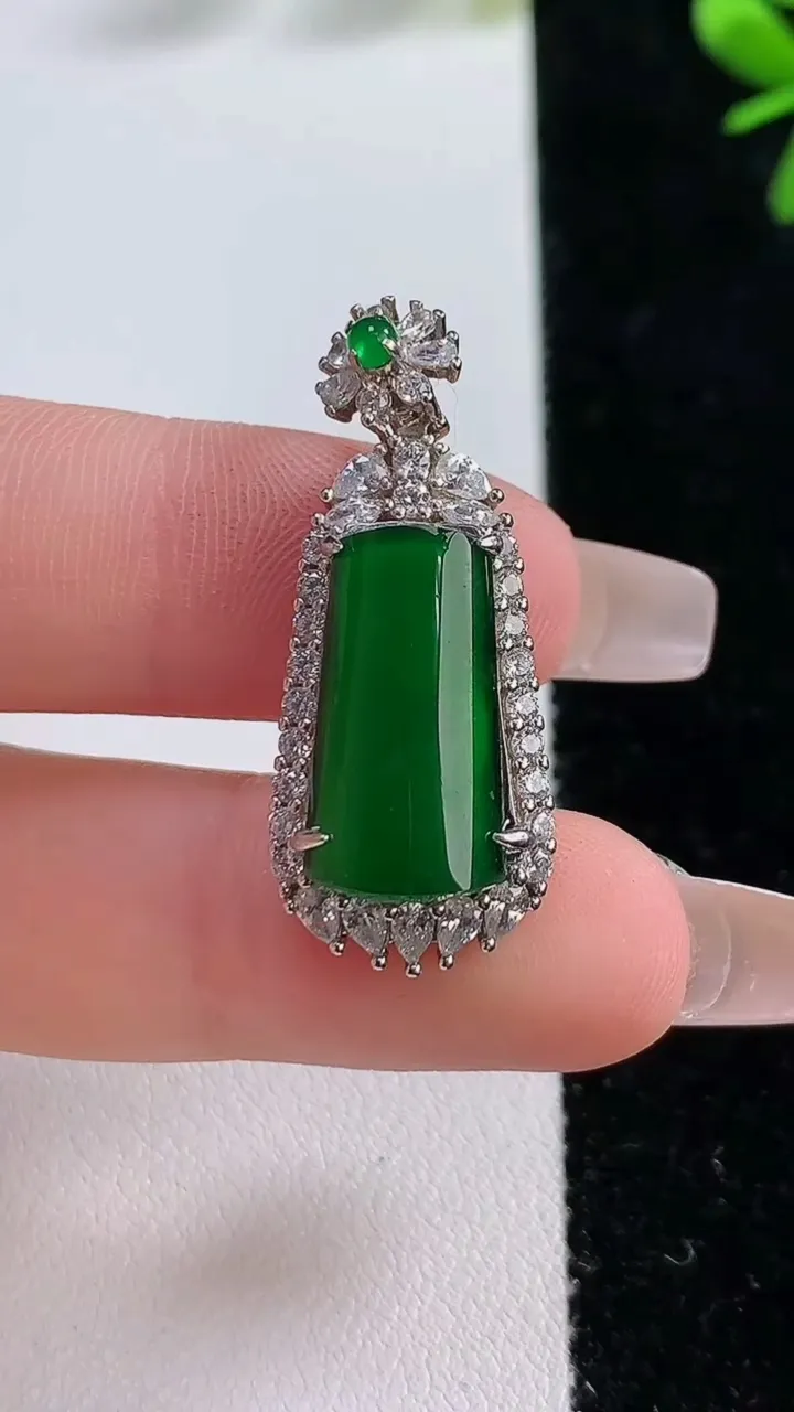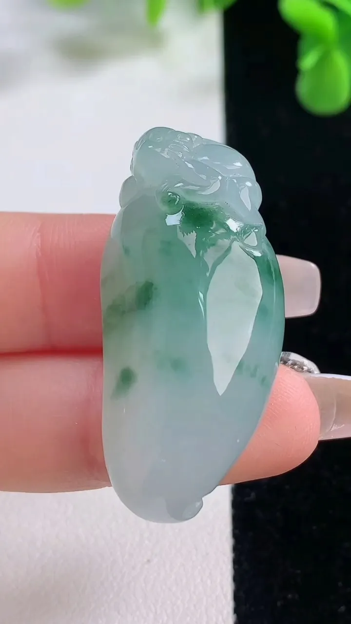 天然A货翡翠白菜吊坠,尺寸42-19.7-10.3,重量:18.57g 12月20日