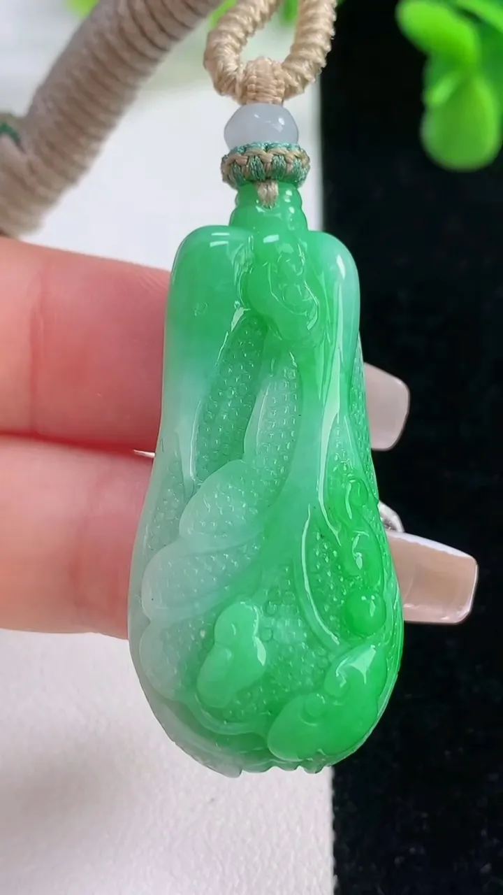 天然A货翡翠飘花福瓜吊坠,尺寸39.3-18.7-12.5,重量:15.91g 12月20日