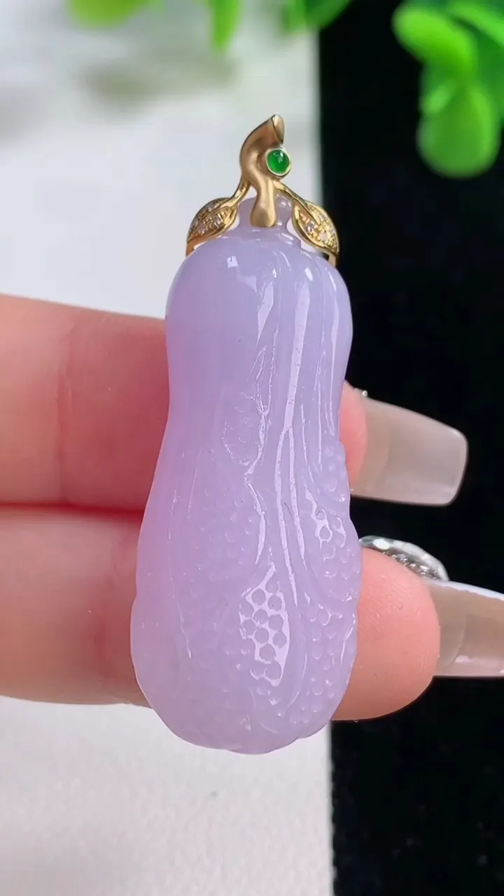 天然A货翡翠18K金紫罗兰白菜吊坠,尺寸37.3-15.3-8.8,重量:10.15g 12月20日