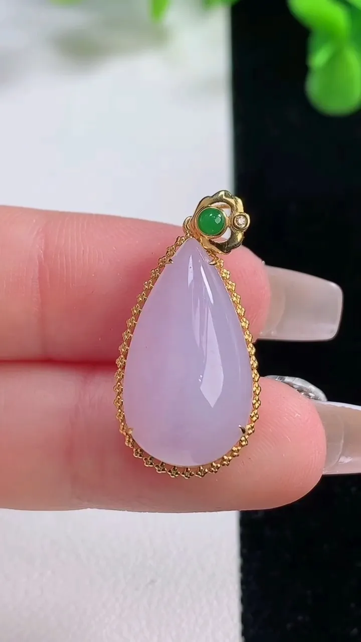 天然A货翡翠18K金紫罗兰水滴吊坠,尺寸27.7-13.8-8.5,裸石21-11.7重量:3.69