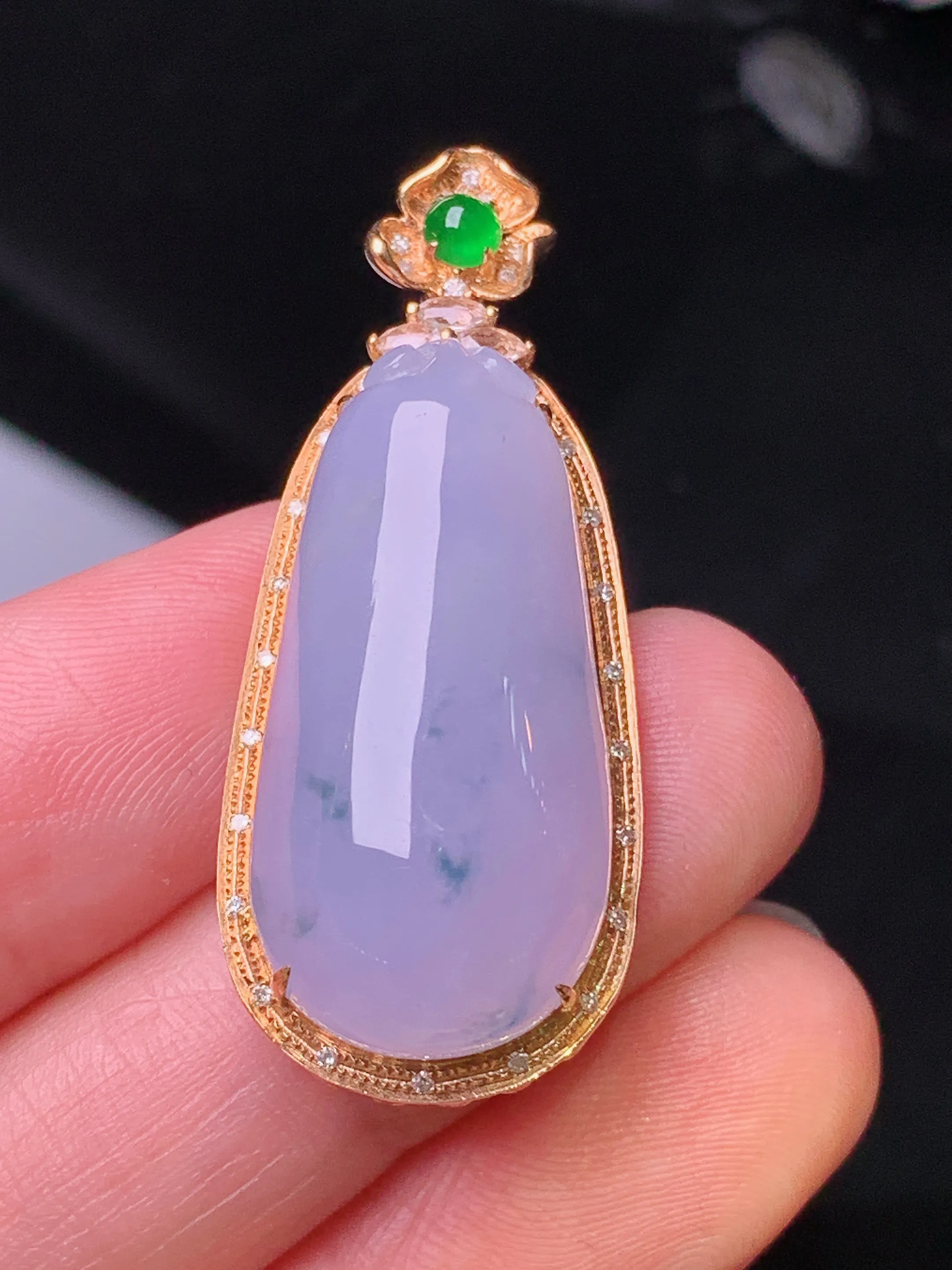 18k金钻镶嵌紫罗兰福瓜吊坠 玉质细腻 色泽清新艳丽 整体尺寸38.3*16.2*9.8