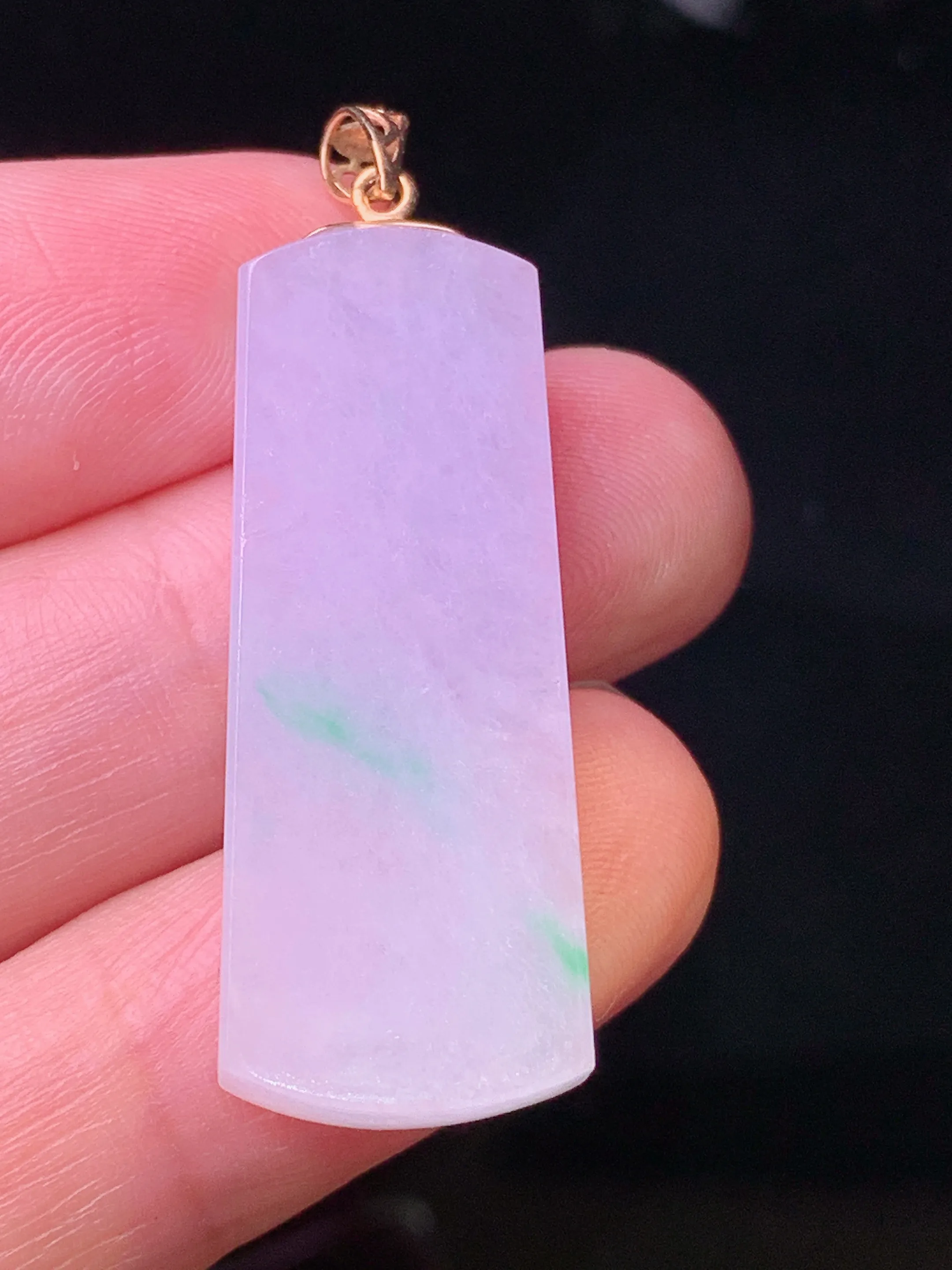 18k金镶嵌紫罗兰无事牌吊坠 玉质细腻 色泽清新艳丽 整体尺寸40*12.7*4.5