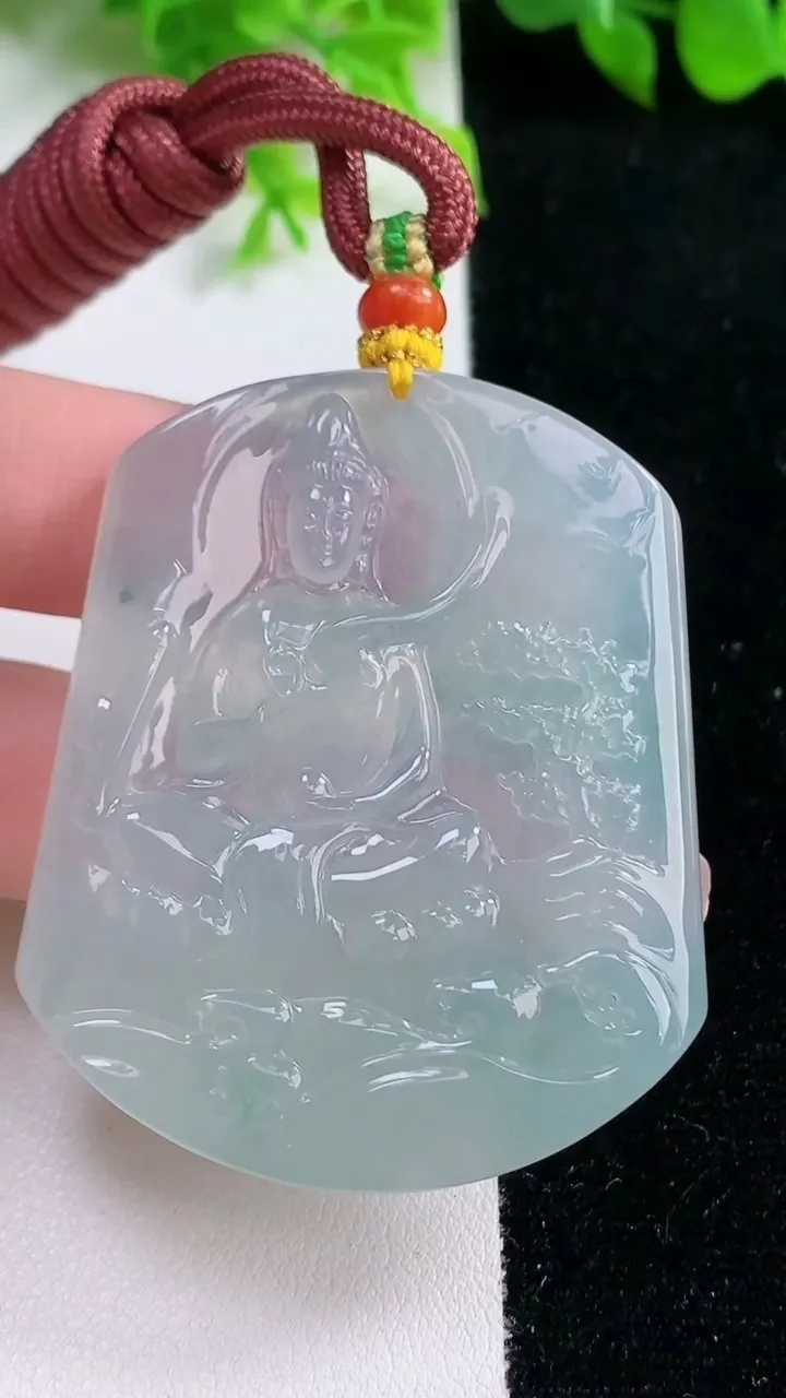 天然A货翡翠种飘花观音菩萨吊坠,尺寸53.5-44.4-5.4,重量:38.06g 1月17日