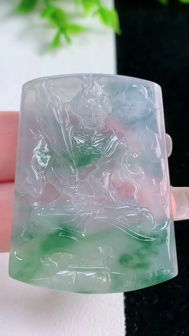 天然A货翡翠种飘花不动明王吊坠,尺寸45.5-34.5-5,重量:19.55g 1月17日