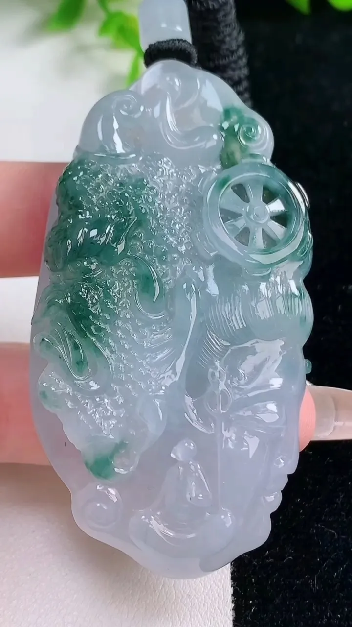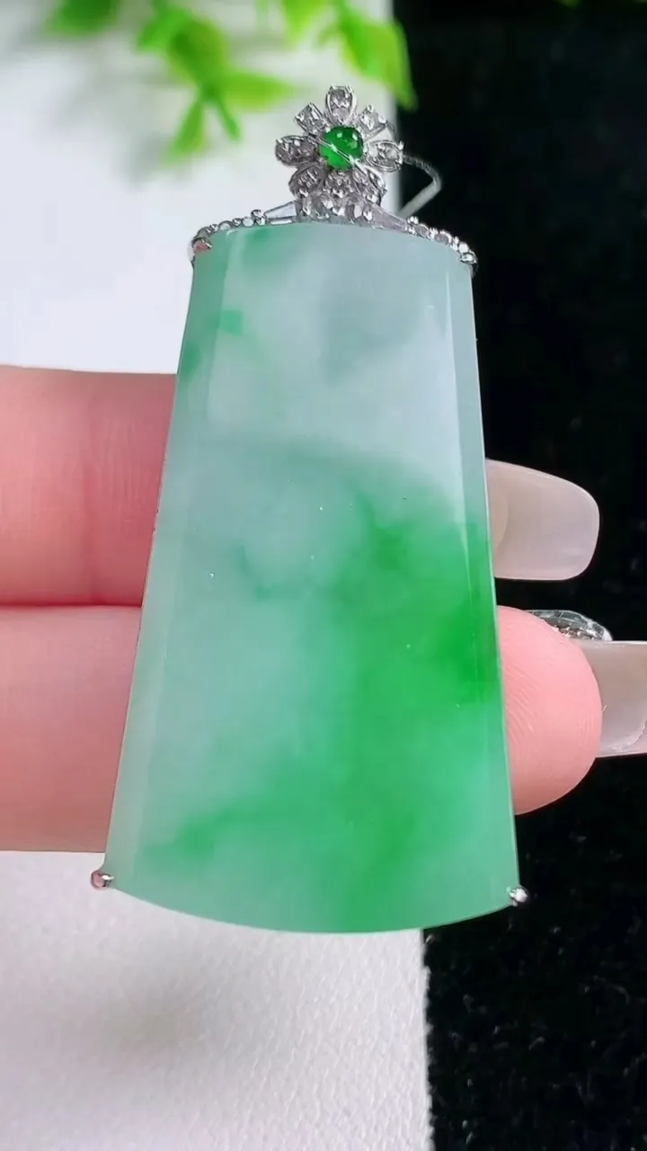 天然A货翡翠种飘花一念之间吊坠,尺寸65.6-35.6-11,重量:52.14g 1月17日