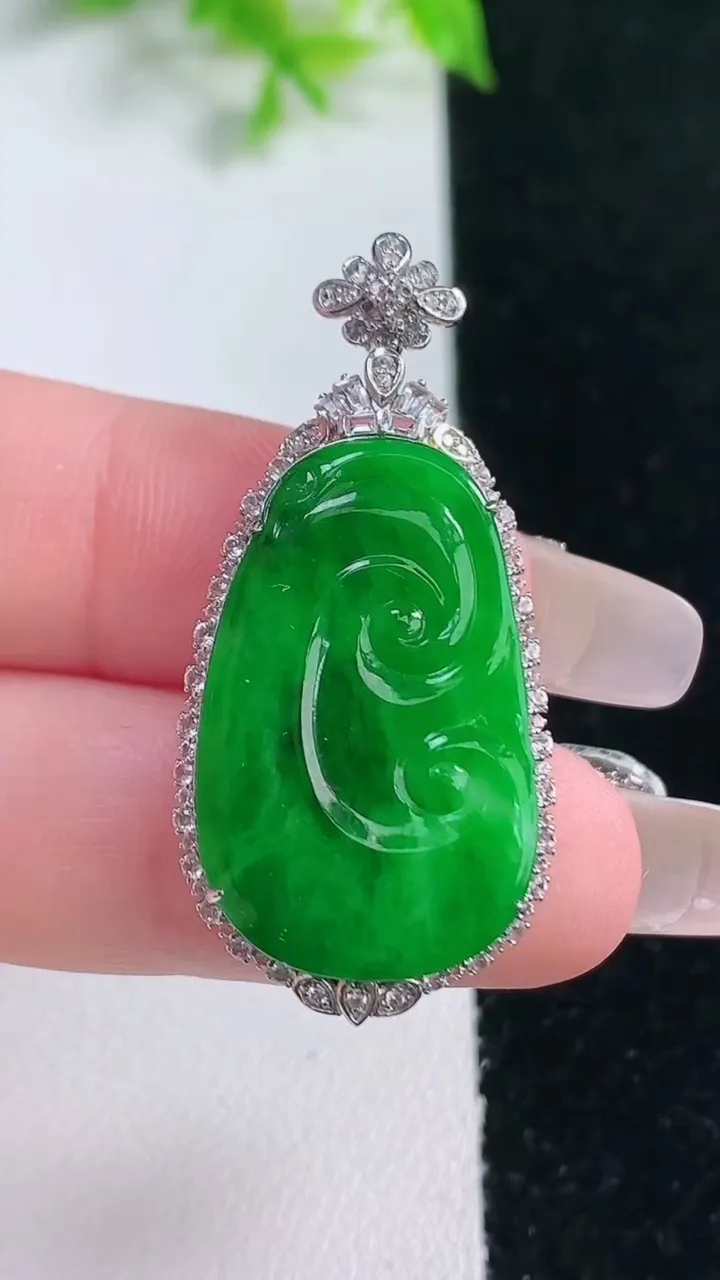 天然A货翡翠如意吊坠,尺寸39-18.2-5.4,裸石25.7-16重量:4.05g 1月17日