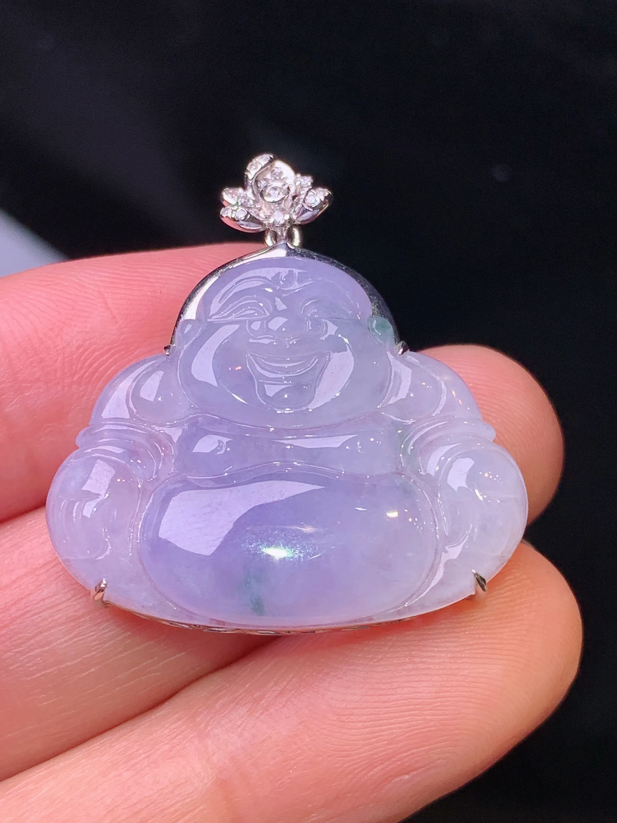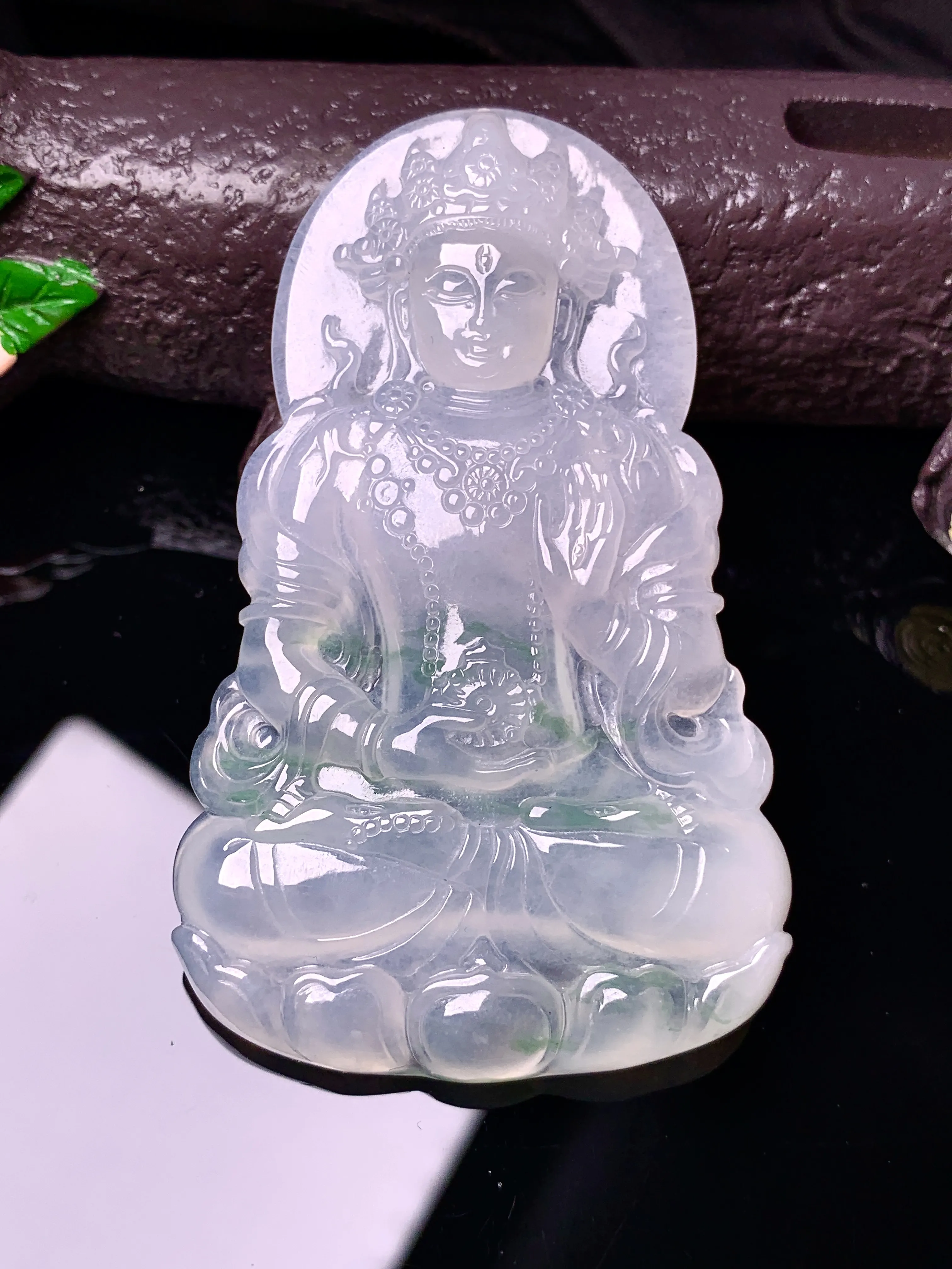 实拍A货翡翠56.7/39.6/5.8老坑冰胶果冻如来佛祖吊坠翡翠挂件
