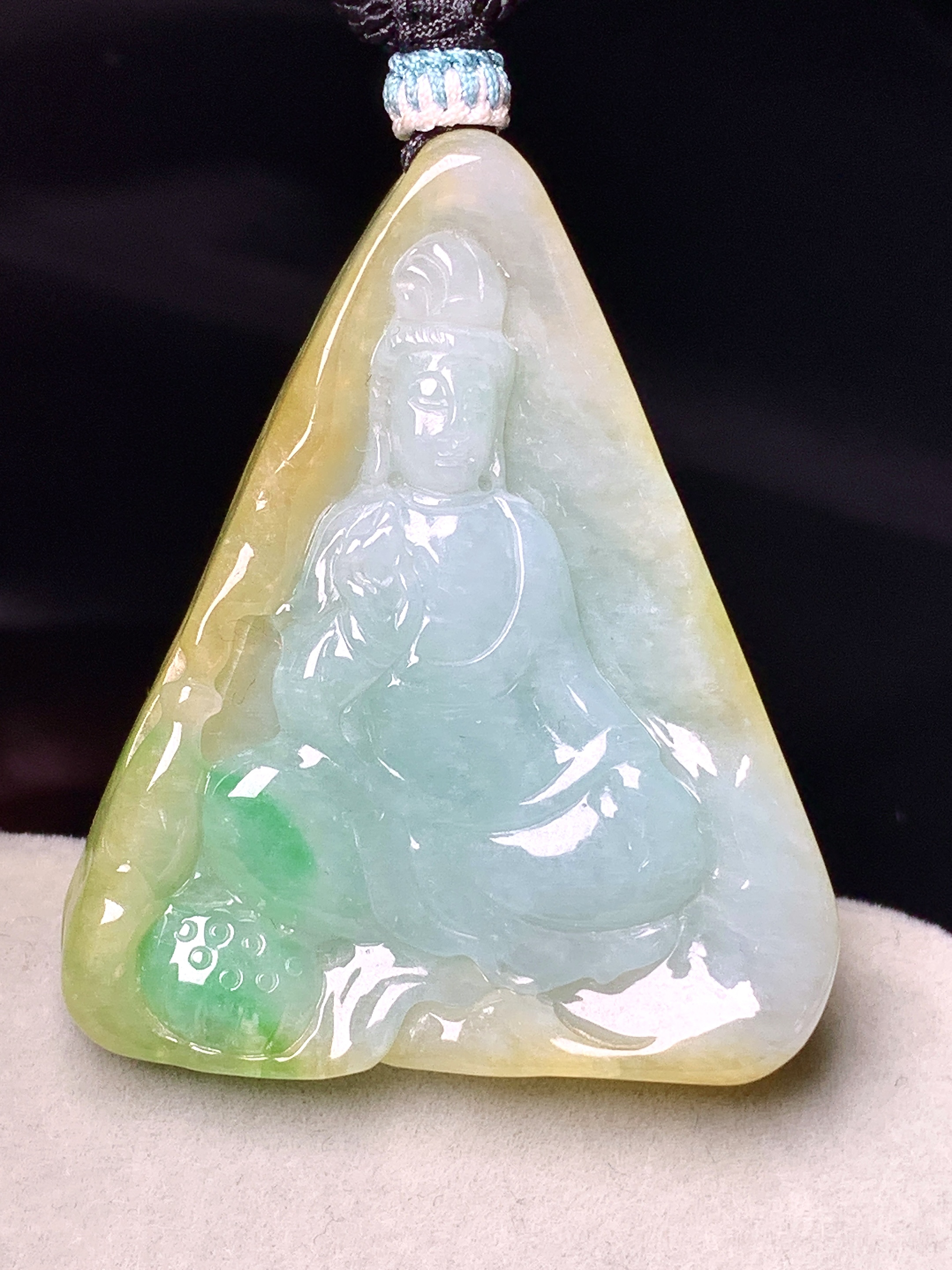 飘黄绿观音吊坠 玉质细腻 色泽艳丽清新 整体尺寸43*35.2*6.2