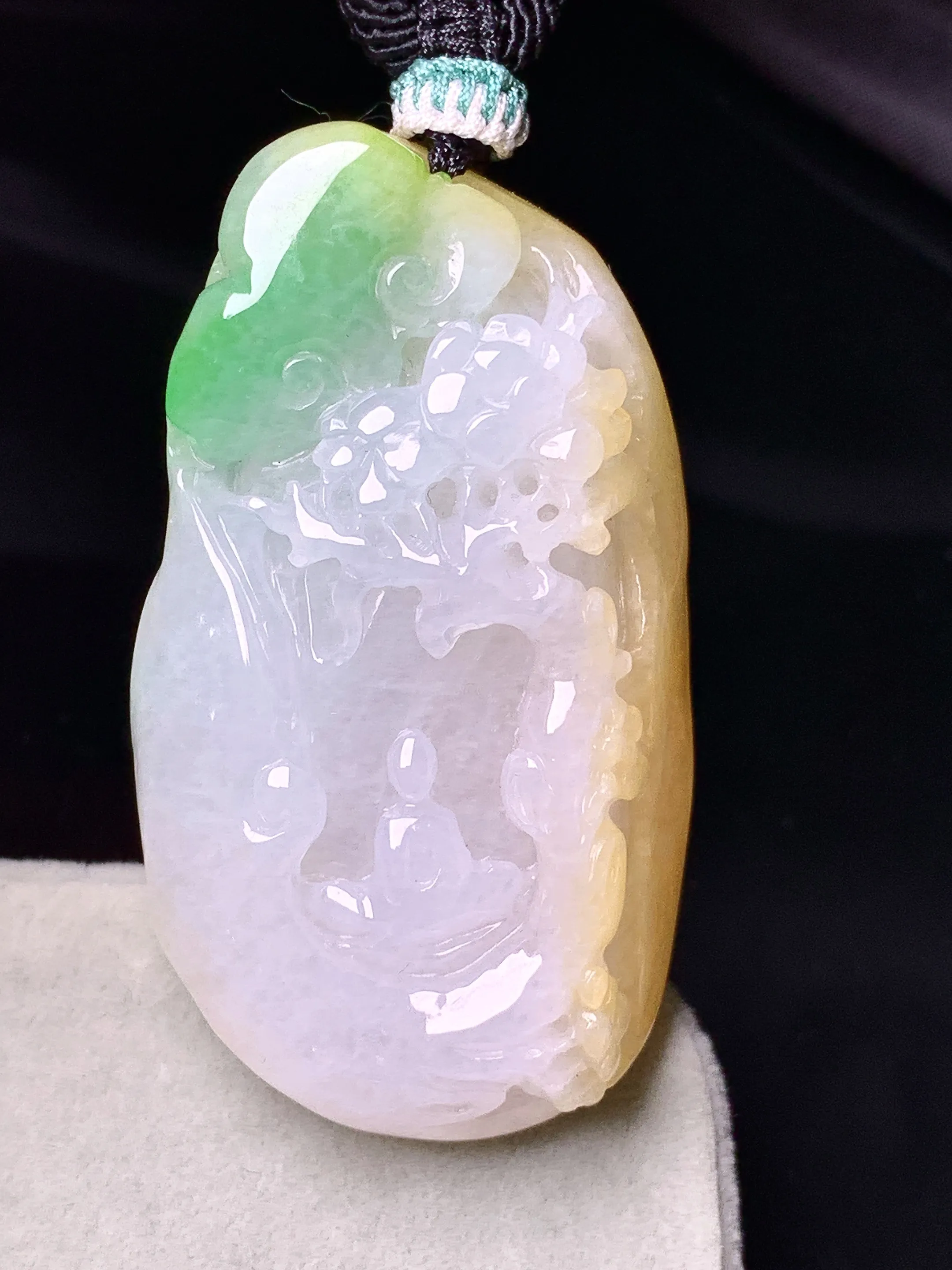 飘黄绿悟道吊坠 玉质细腻 色泽艳丽清新 整体尺寸47.2*26.6*11