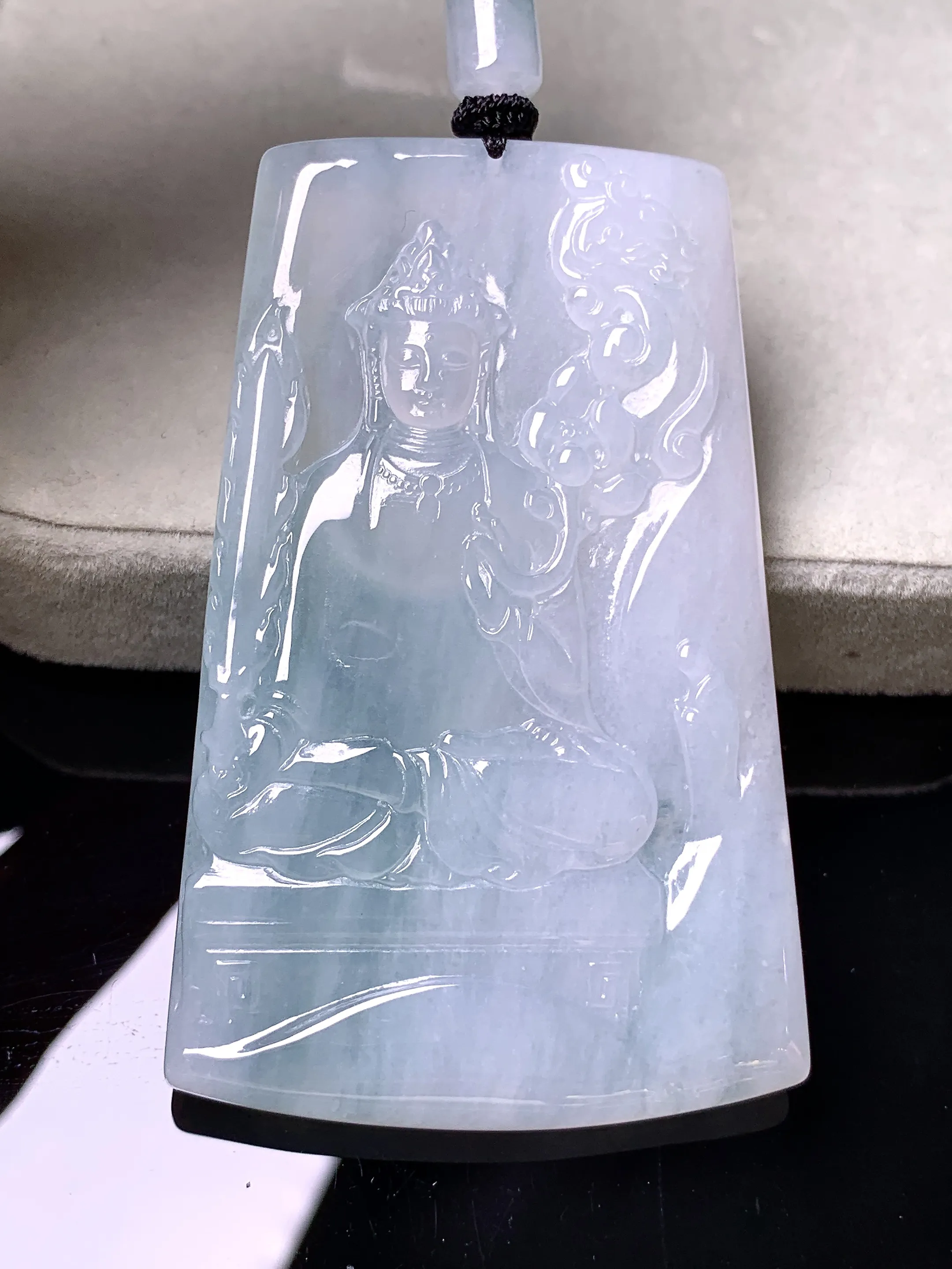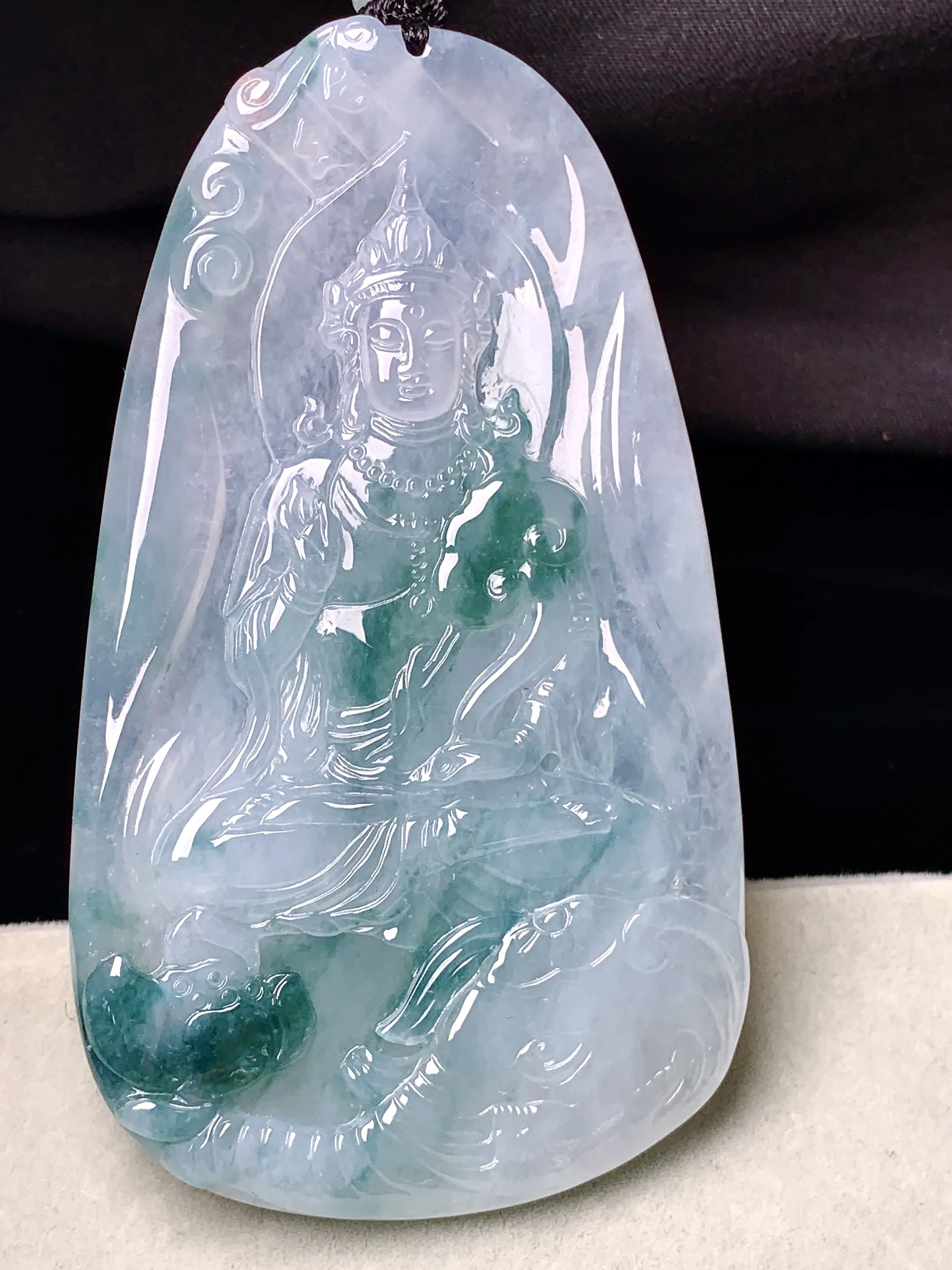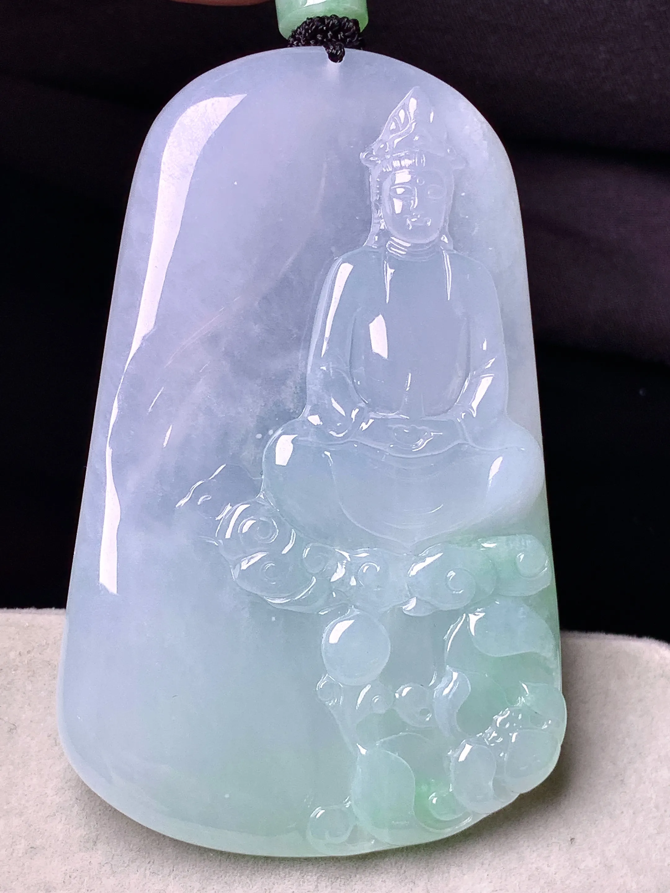 飘绿观音菩萨吊坠 玉质细腻 色泽清新艳丽 整体尺寸68*42.5*6.2