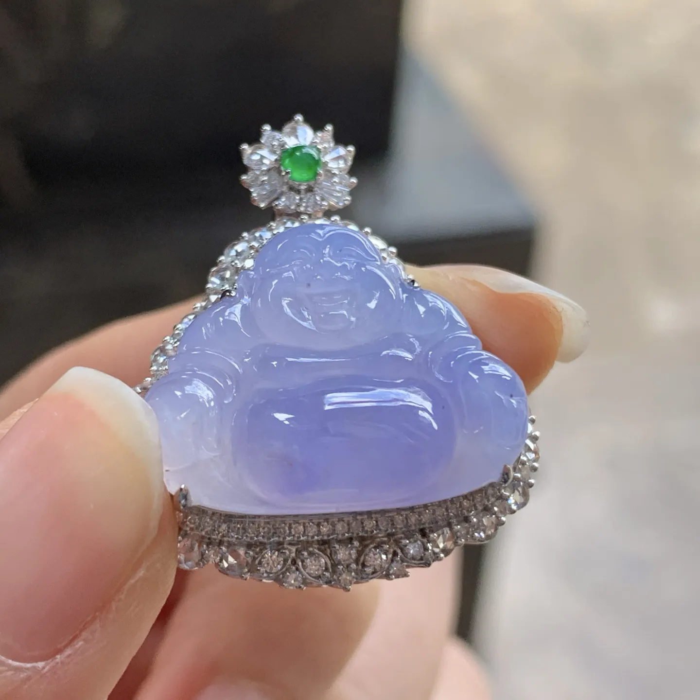 飘绿观音菩萨吊坠 玉质细腻 色泽清新艳丽 整体尺寸74.5*42.6*6.2