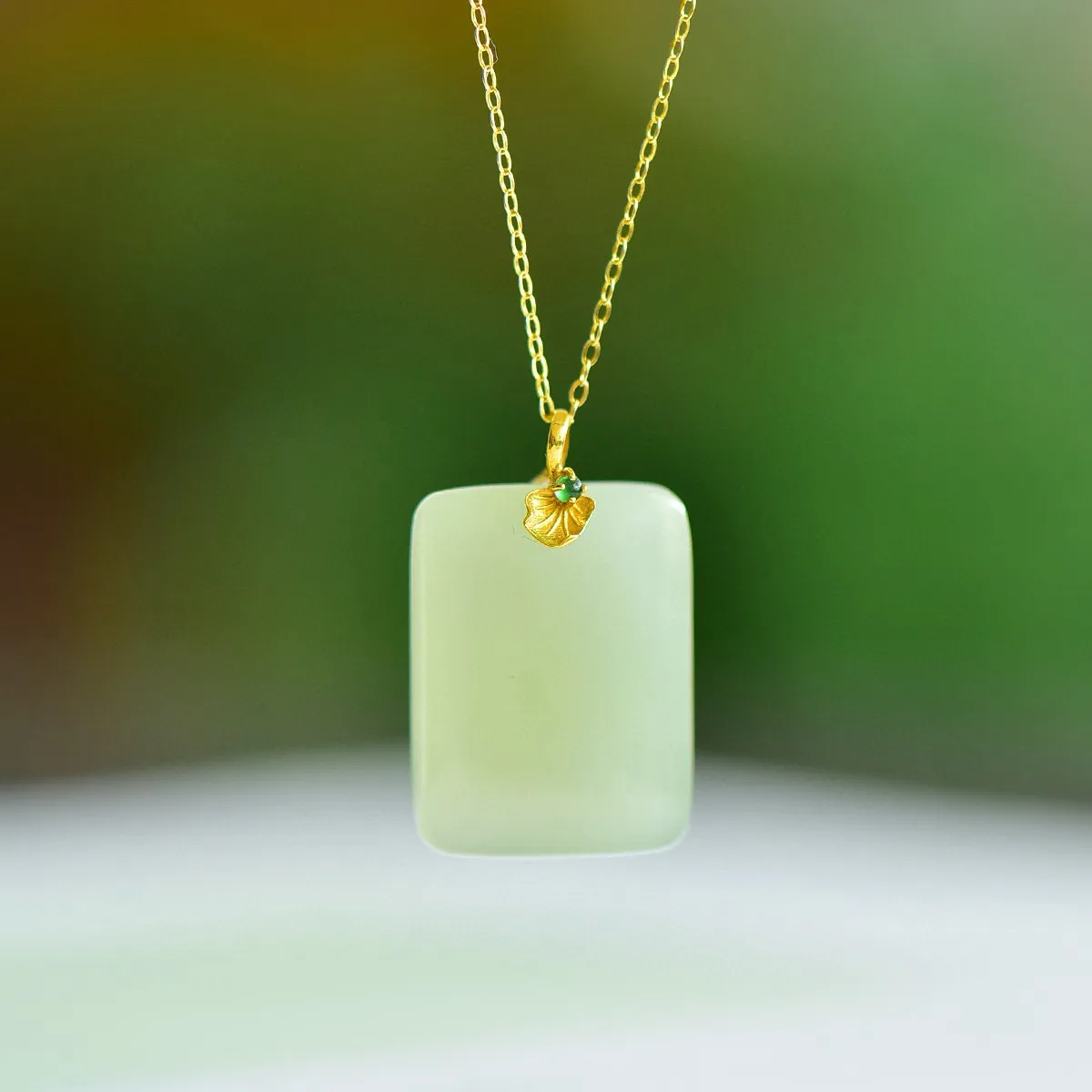 18K金扣镶嵌和田玉晴水小方牌吊坠