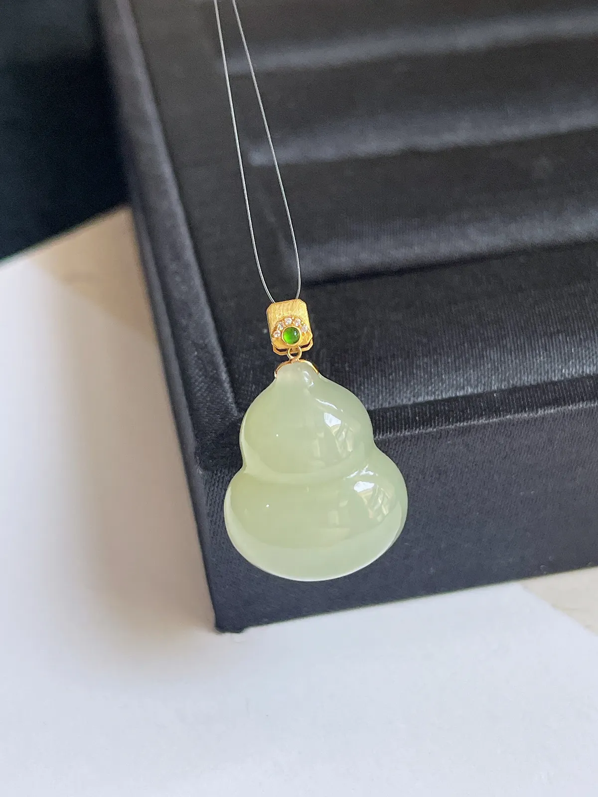 18K金扣镶嵌和田玉晴水葫芦吊坠