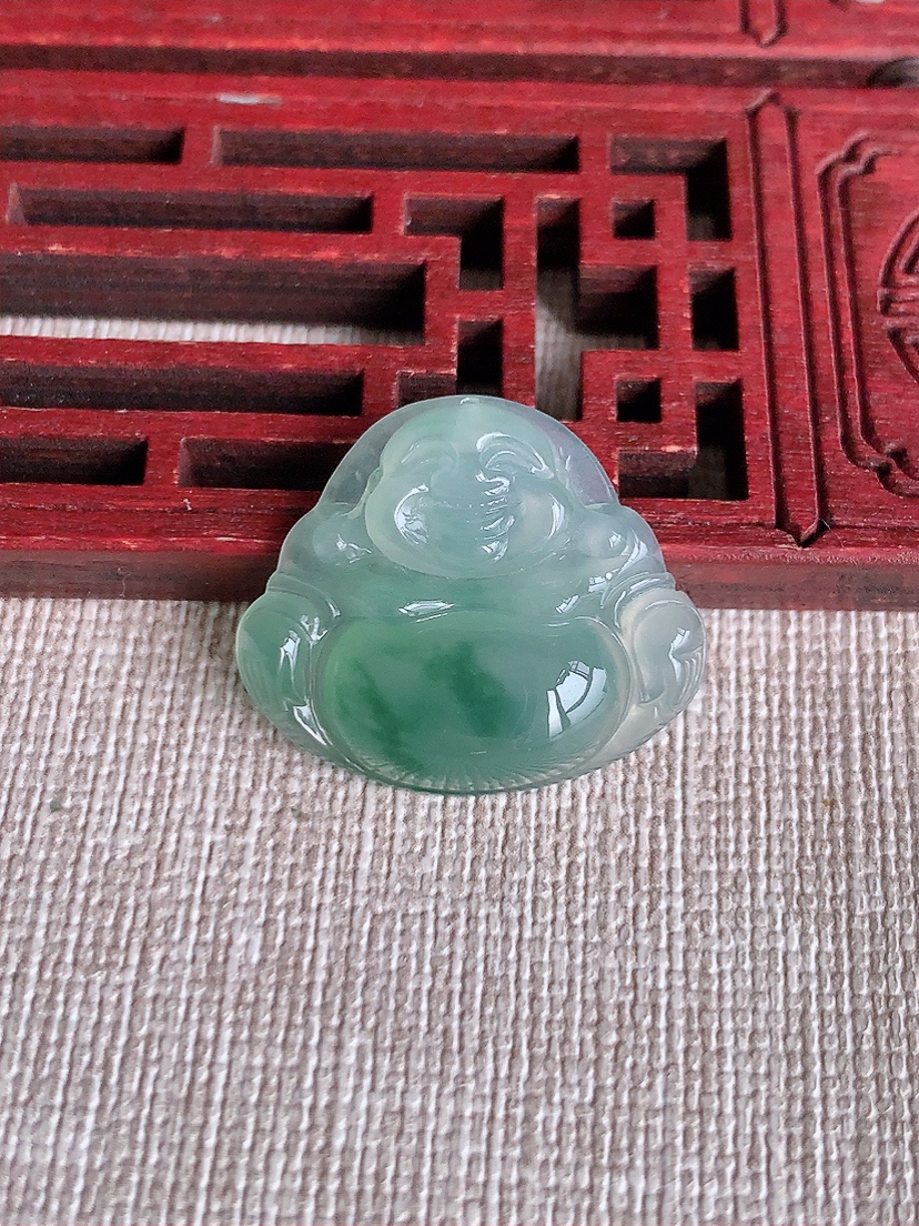 天然A货翡翠飘花佛公吊坠 尺寸21-24.8-5.3mm 重量4.15g 0407